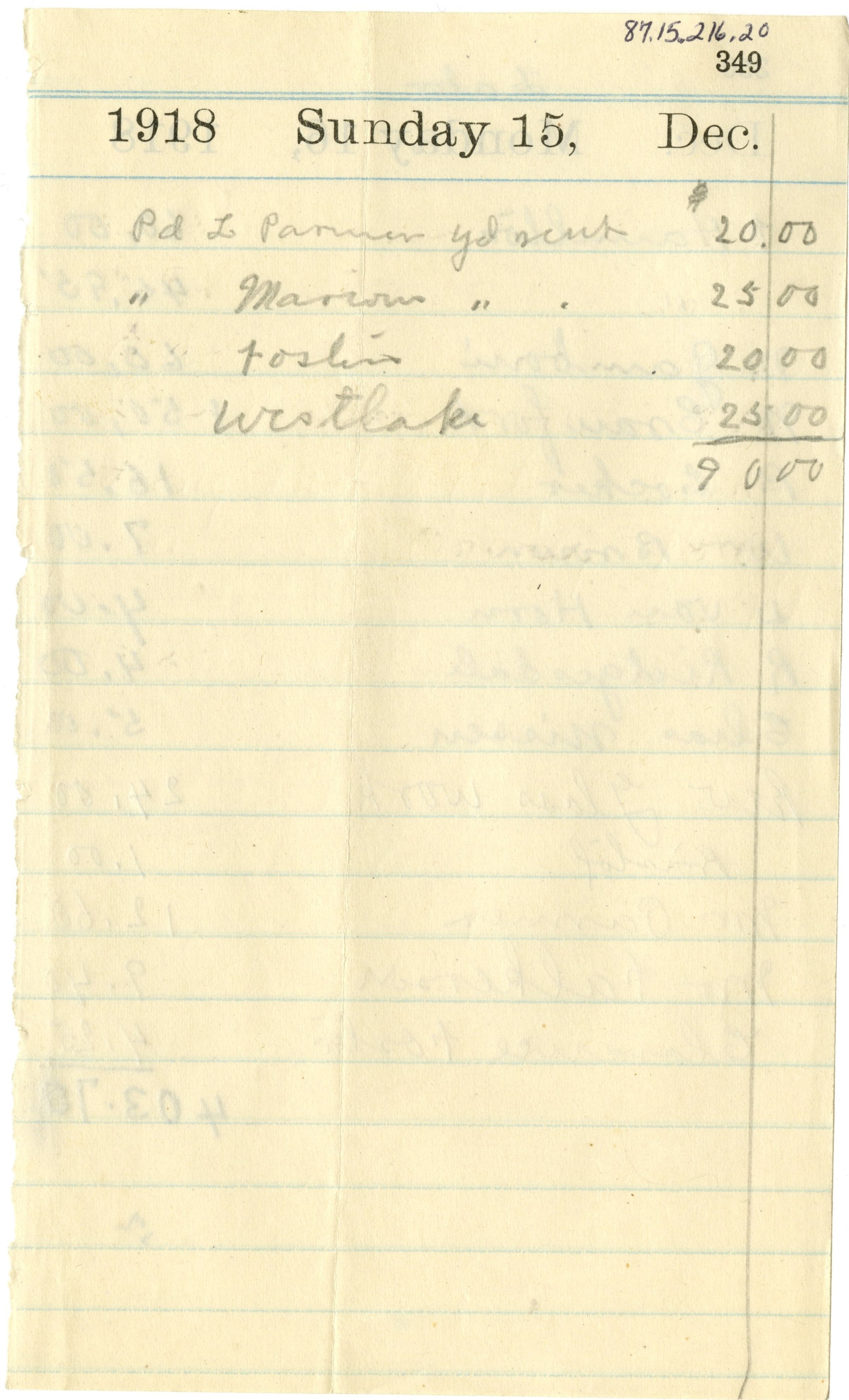 Back: 1918 Sunday 15, Dec. List and numbers.Collection