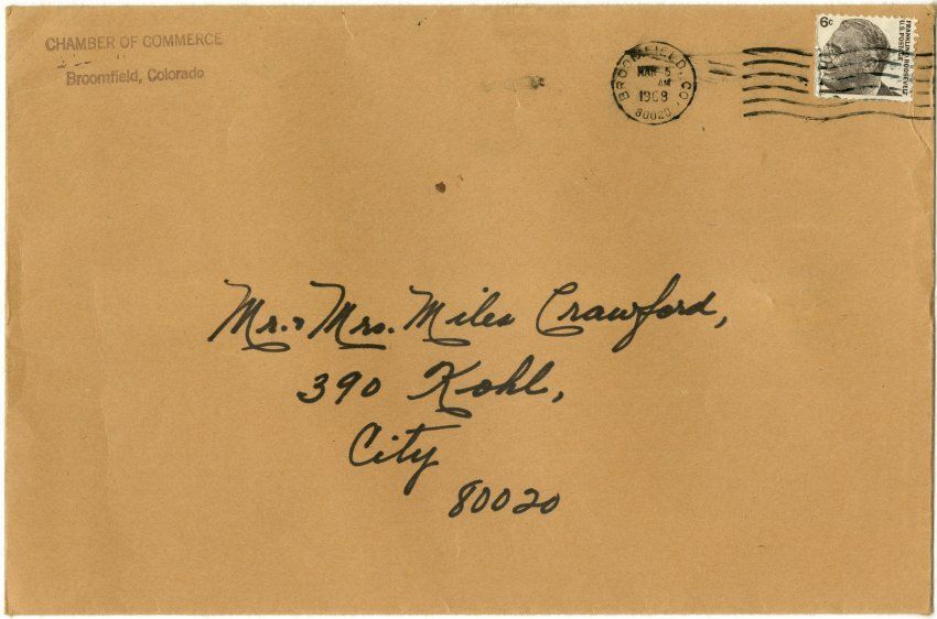 Return address: Chamber of Commerce, Broomfield, Colorado.