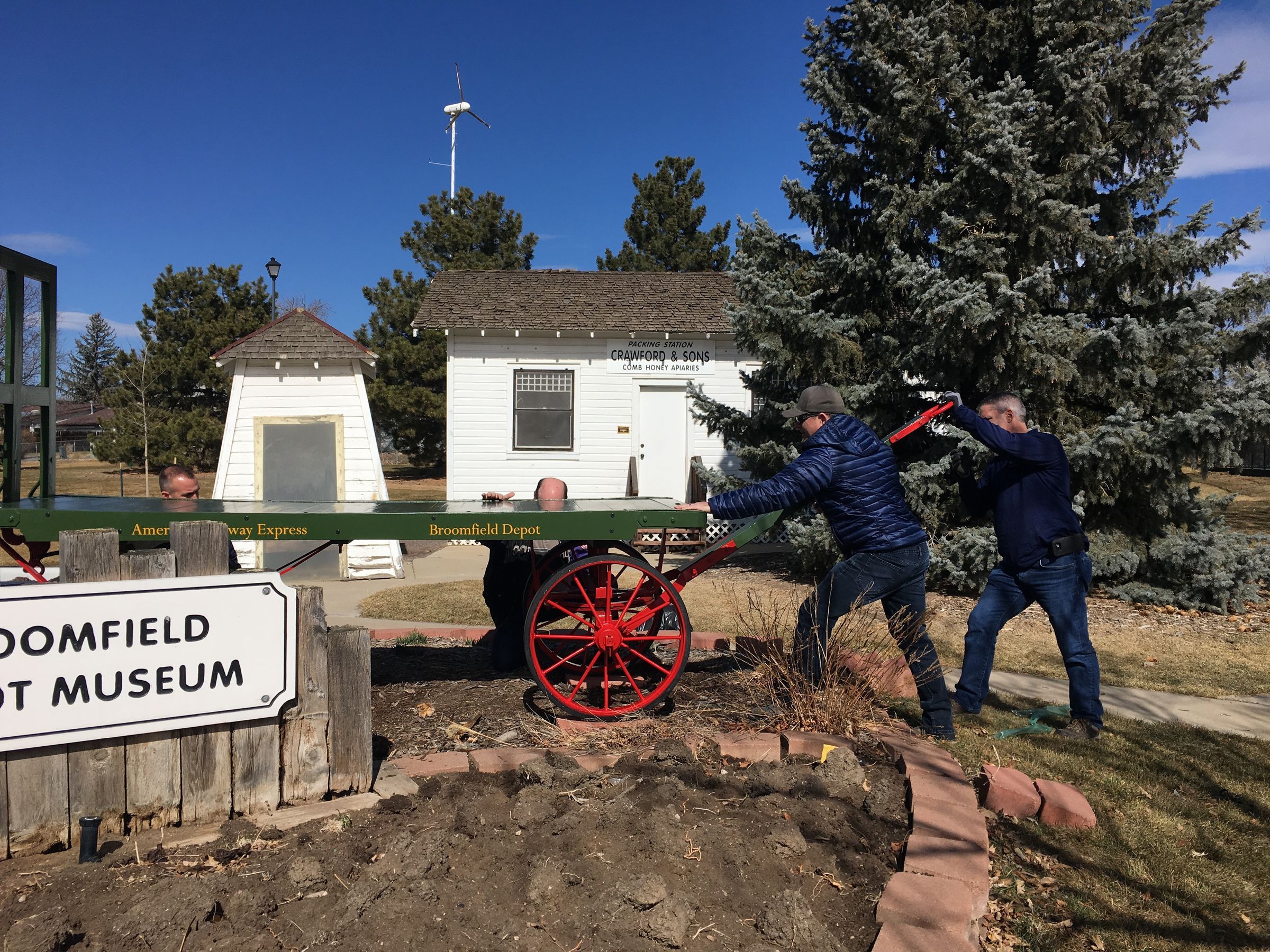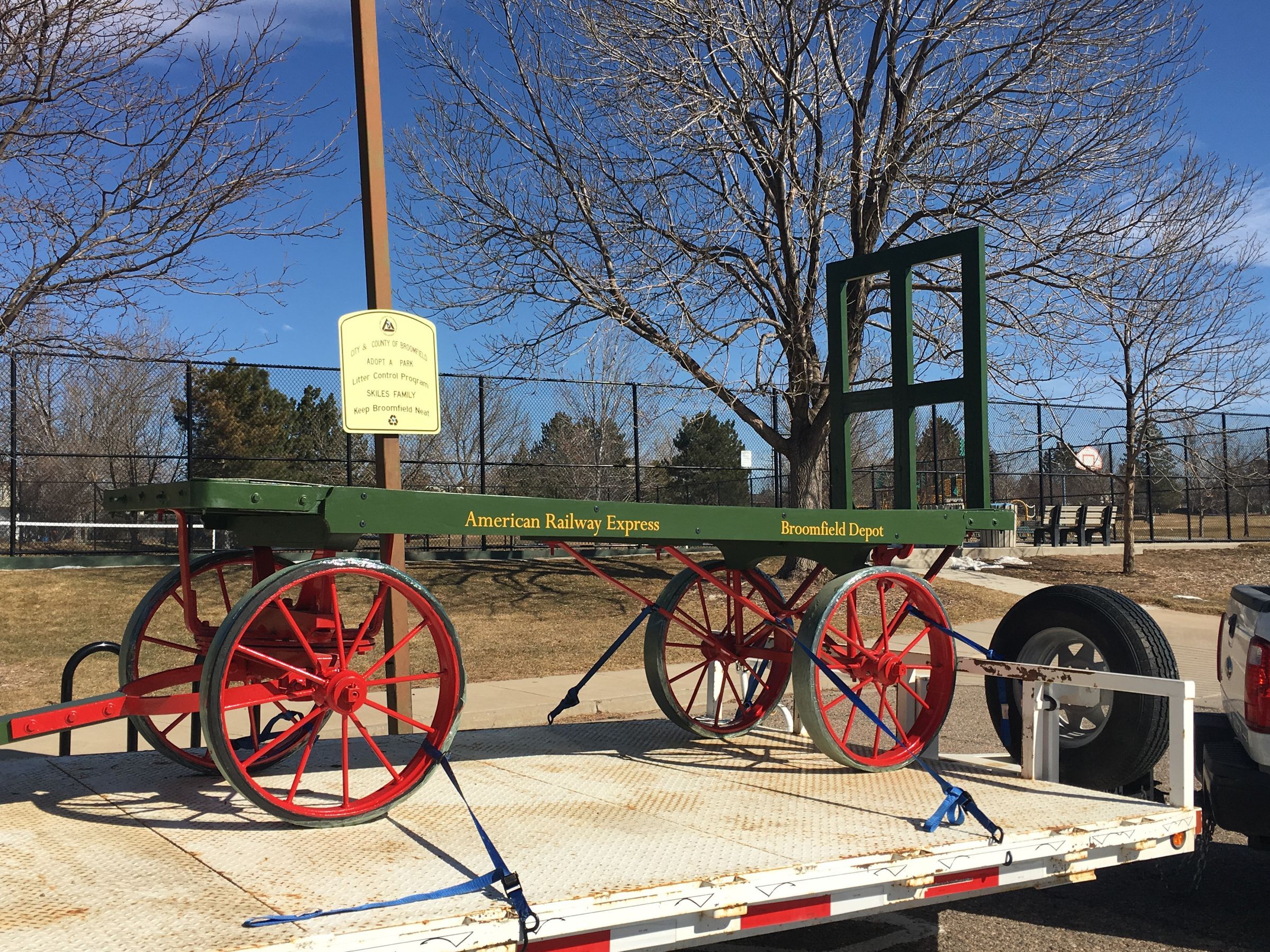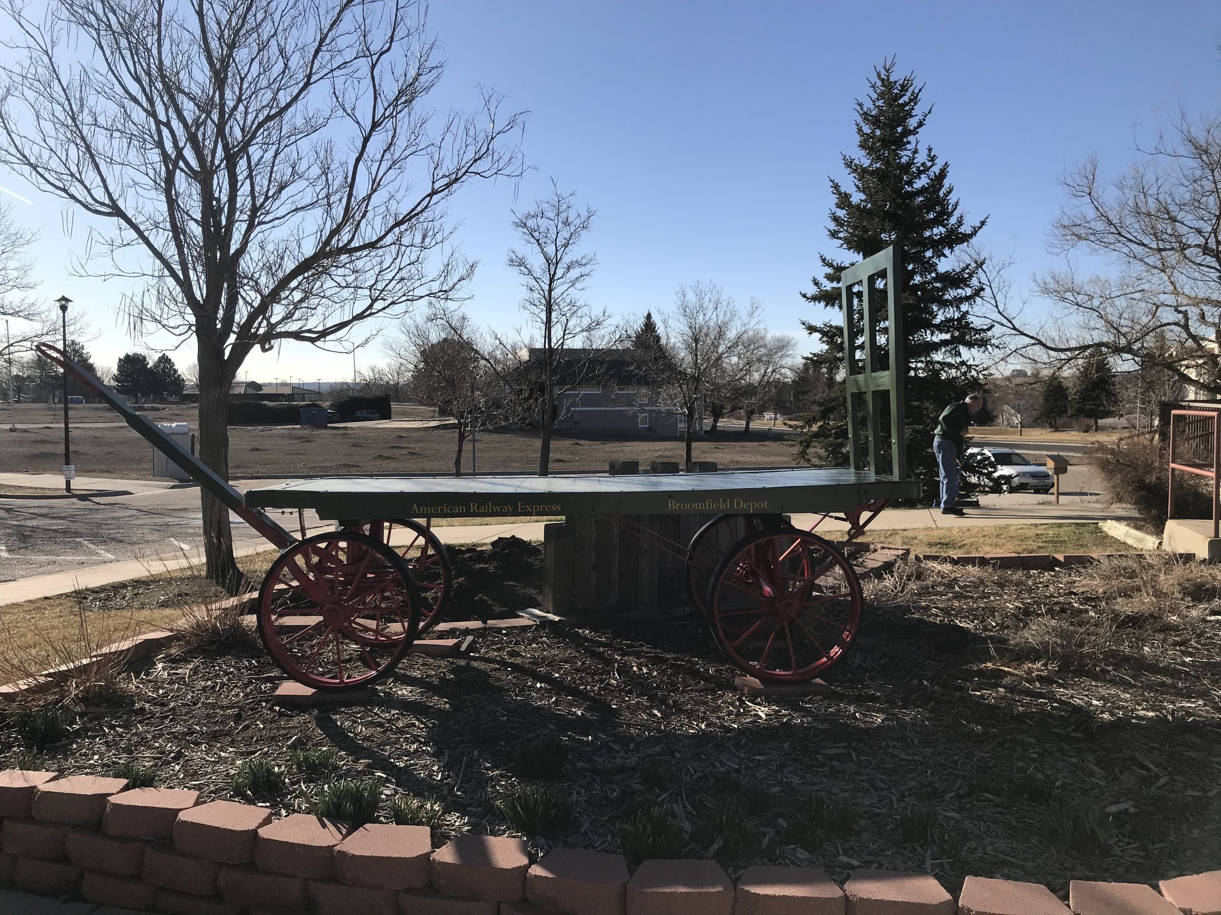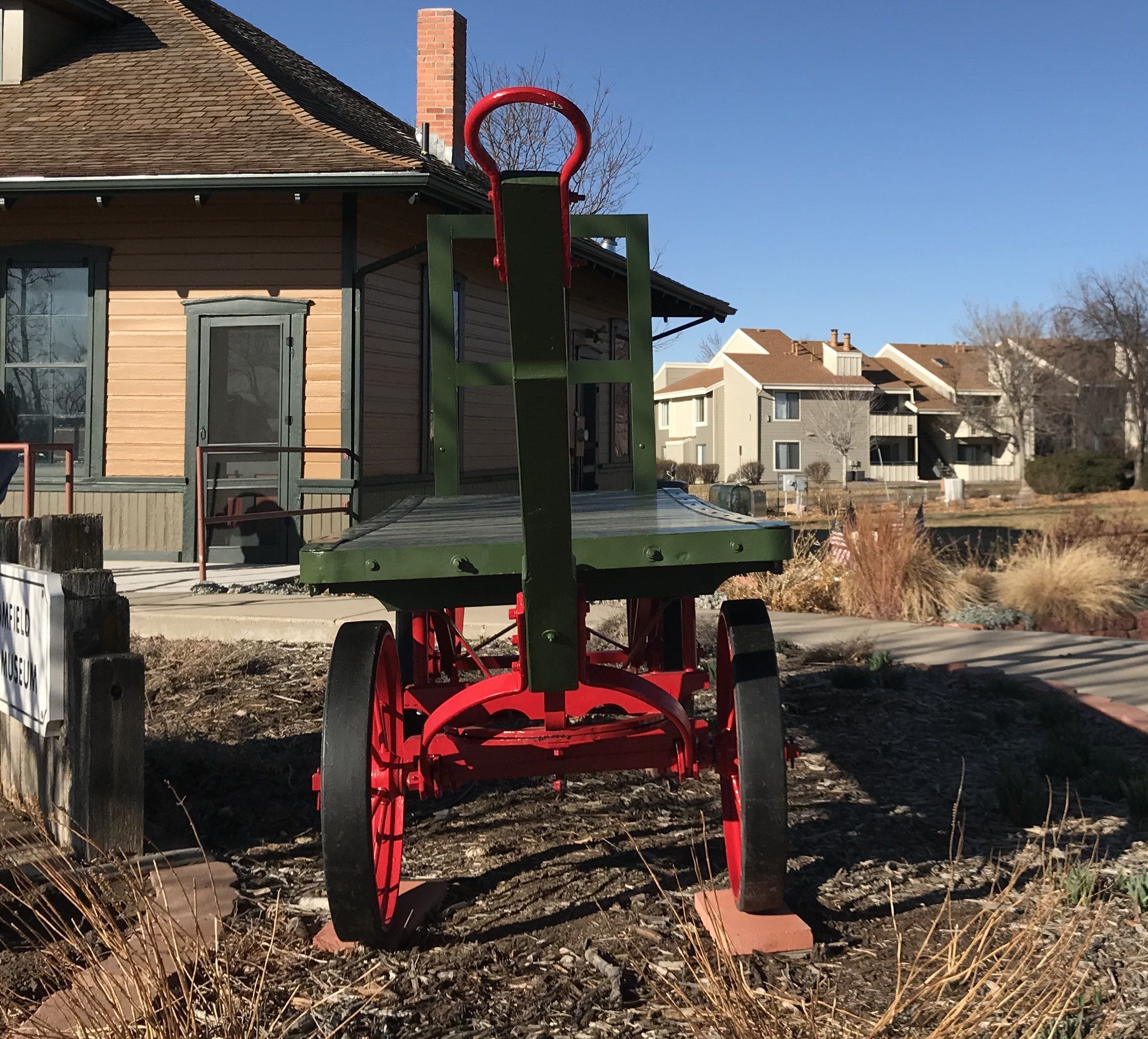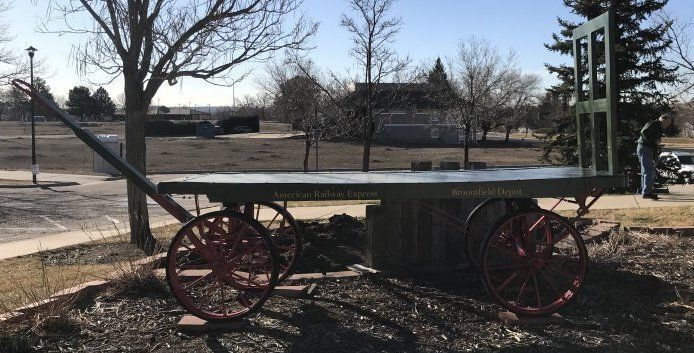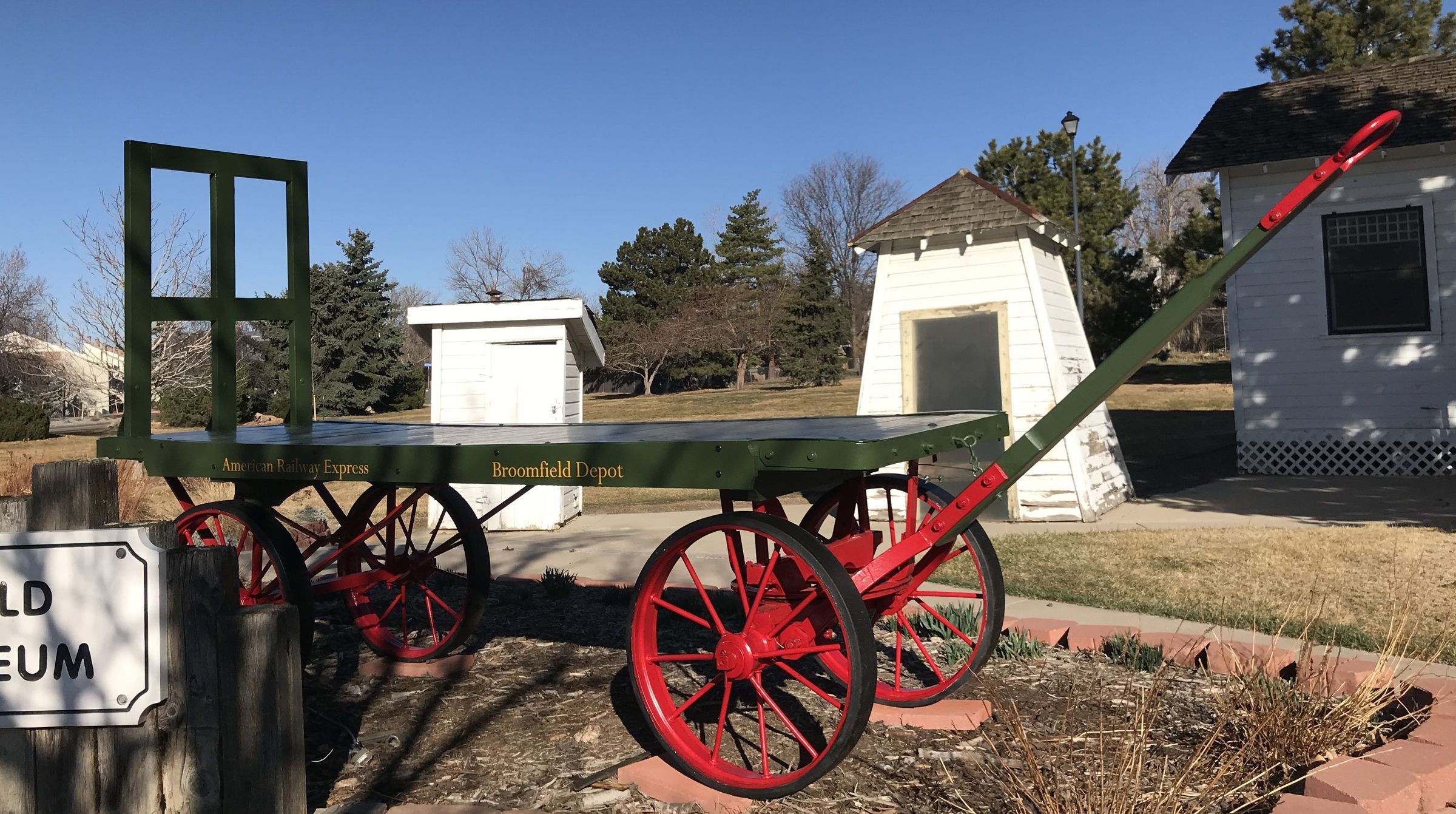 This cart was on exhibit in front of the Broomfield Depot Museum when the City and County took over operations in 2011. Karen McGuire said her husband had previously replaced the wood on the cart.