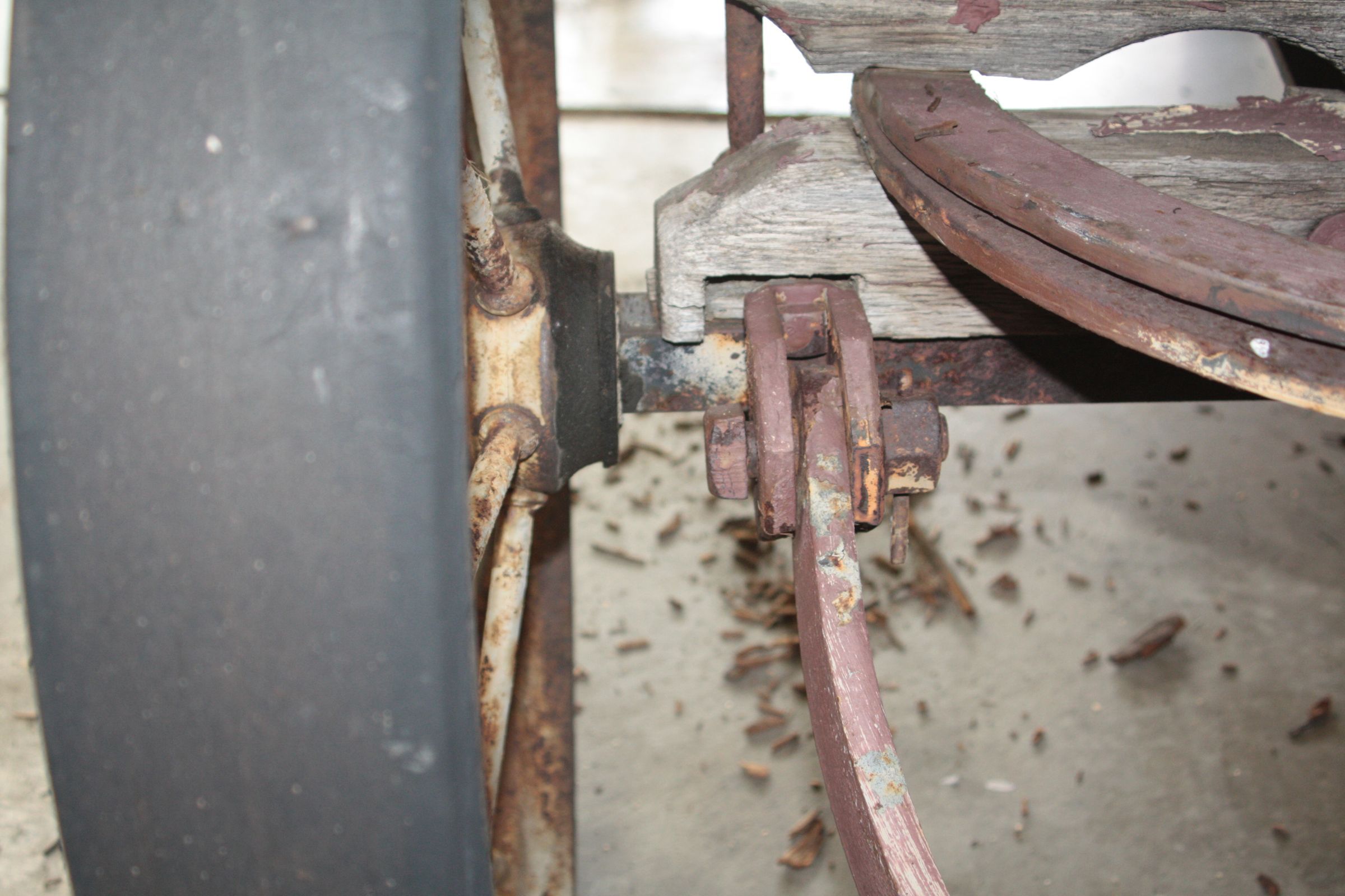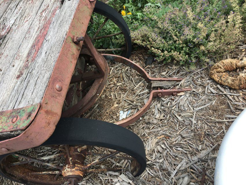 The rubber on tires indicate the cart was made after 1900. The tires were made by Ford Motor Company. Tara Templeman, 03/03/2018