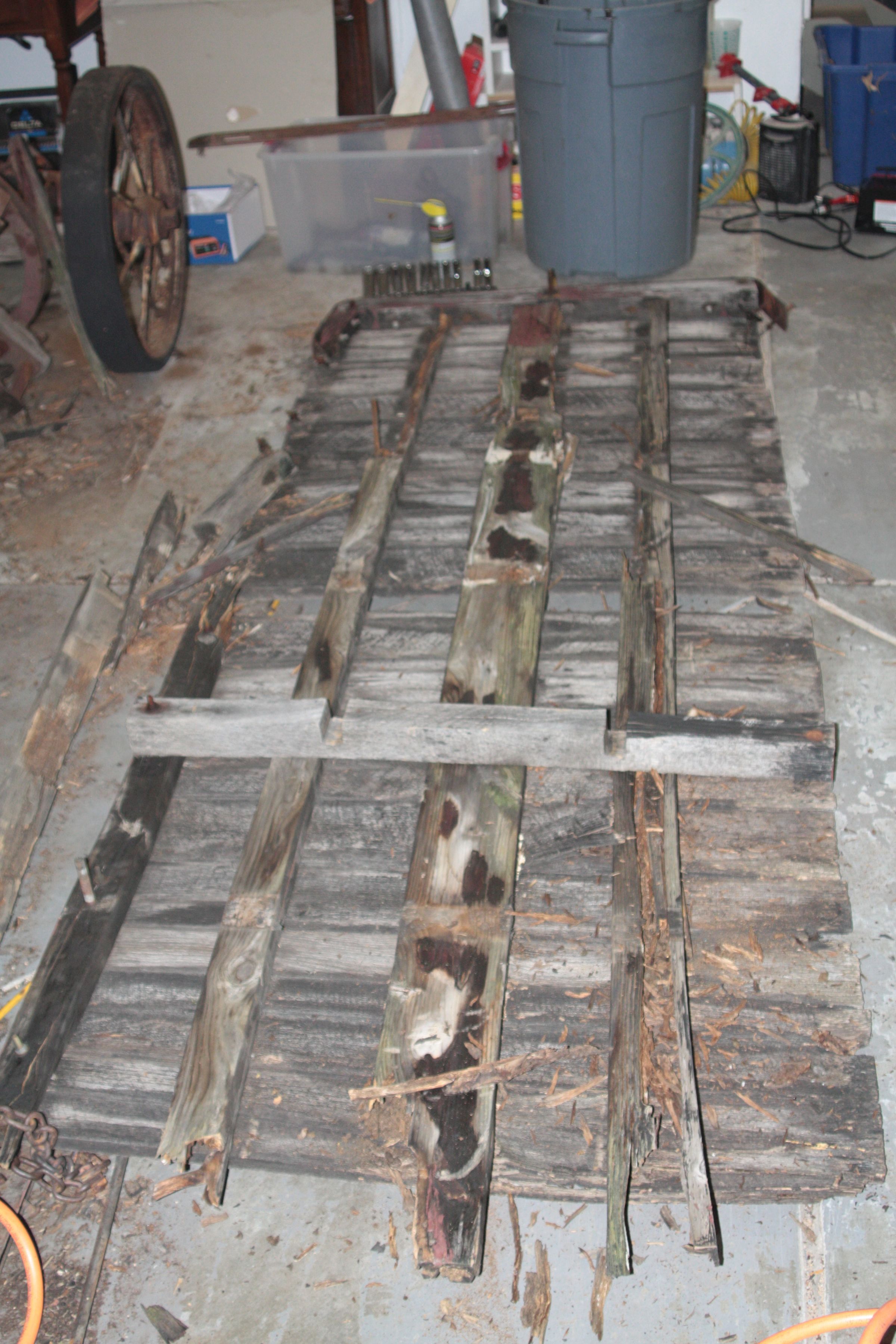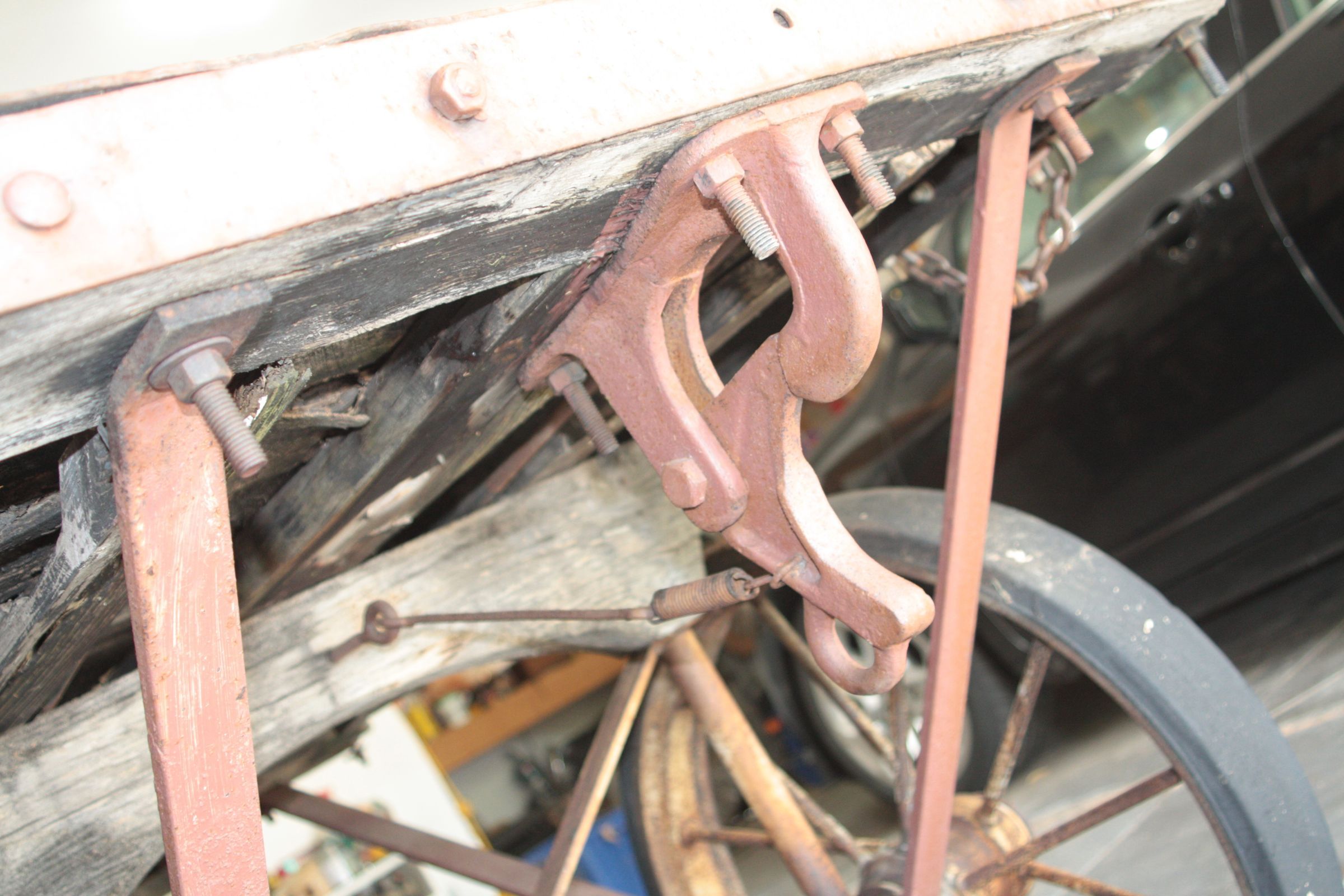 According to Brian Templeman, who rehabilitated the cart 9/2017 to 3/2018, the cart was made in 1905 based on time frame of metal strips along top of bed. After about 1907 these metal strips were moved to the side of the carts.