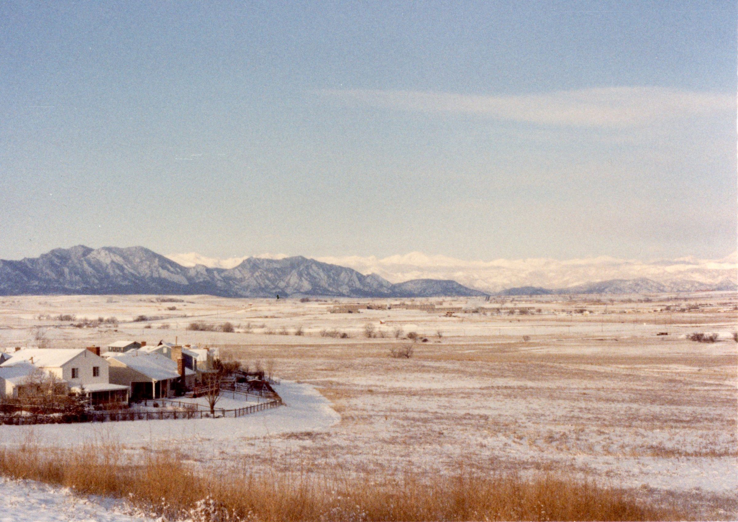 Color photograph showing some houses in the Lac Amora Neighborhood of Broomfield, CO. Photograph was taken in winter.