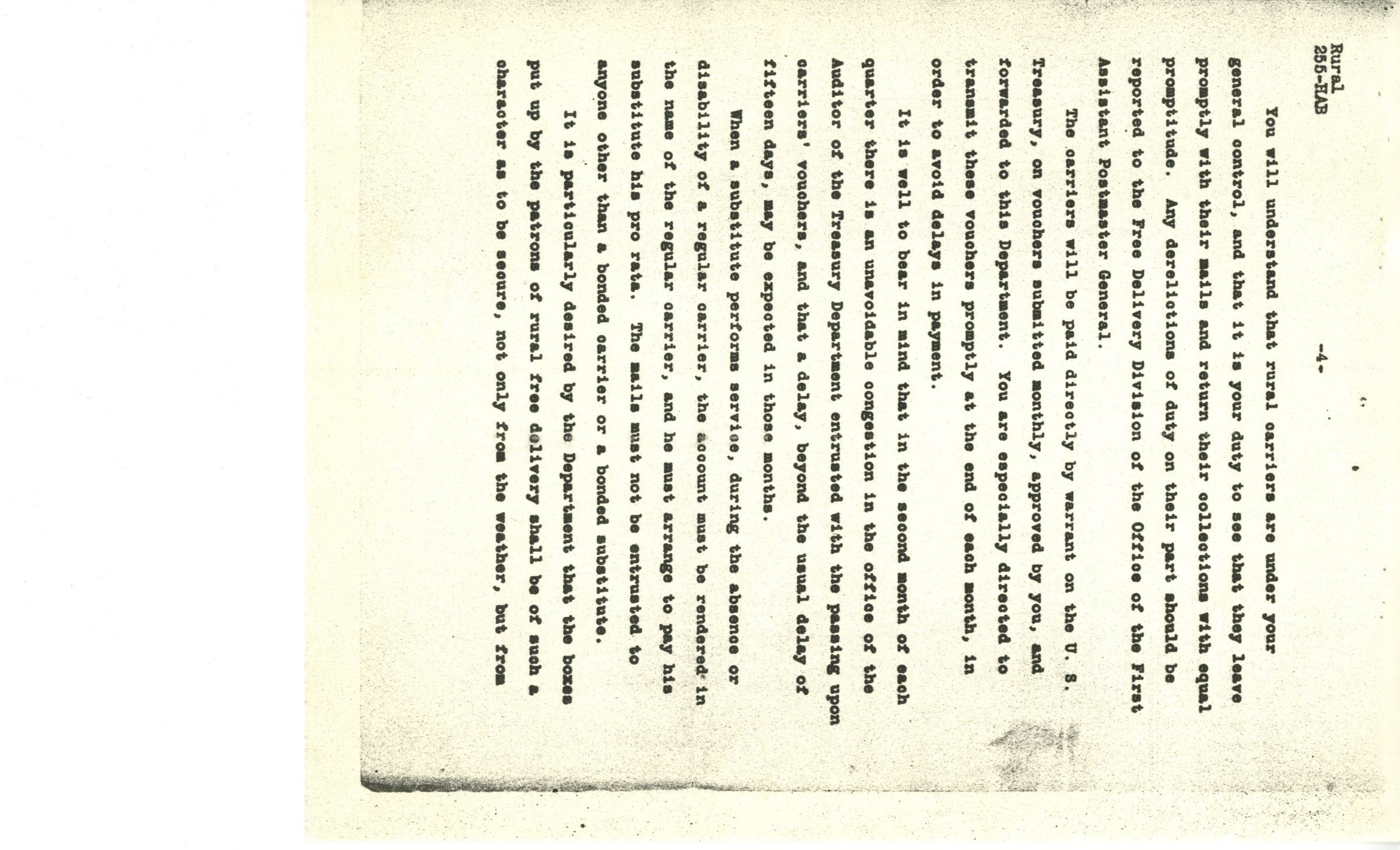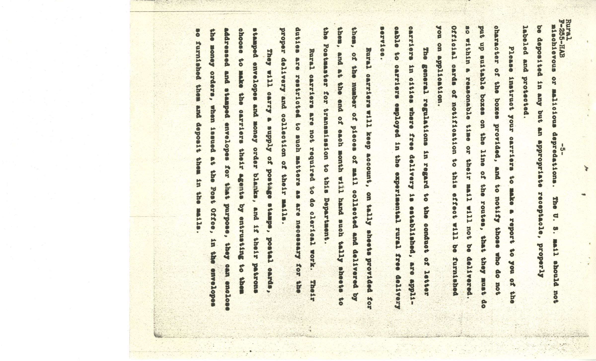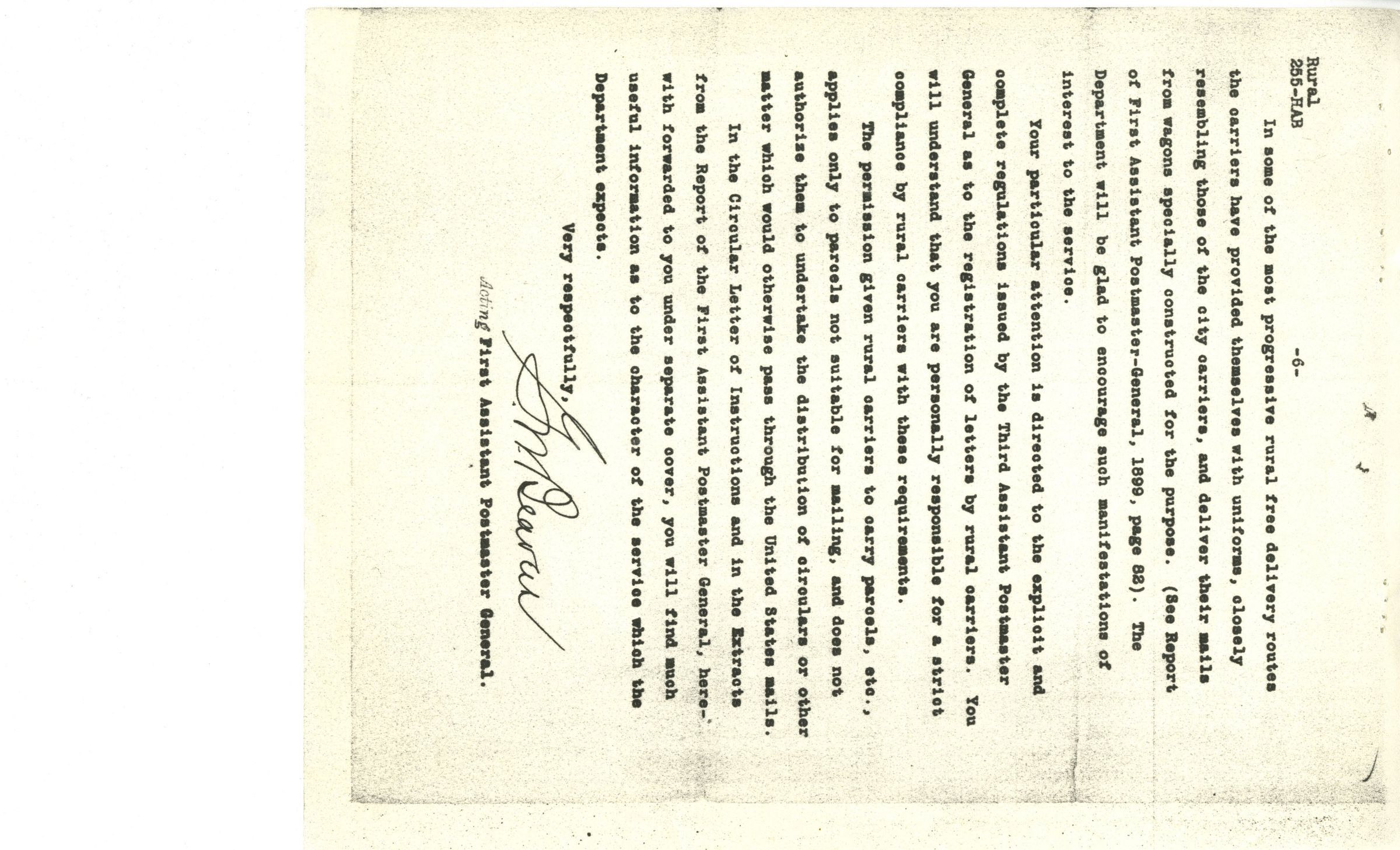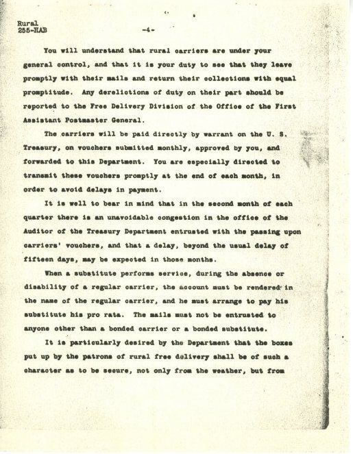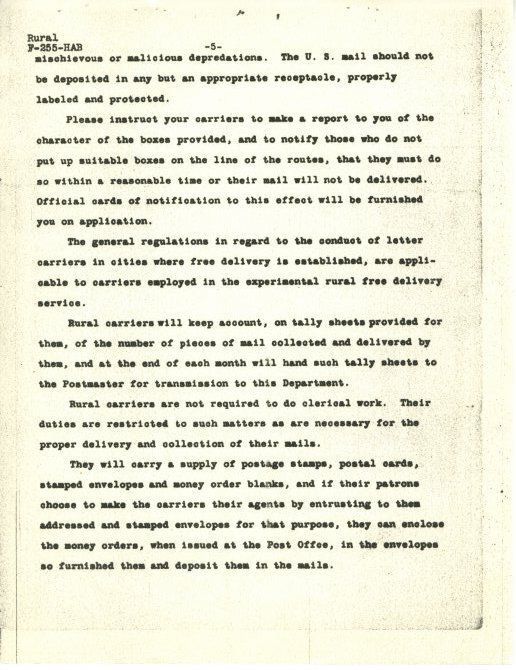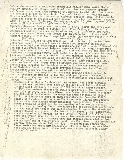 1 folder of documents (a-d) about the history of the Broomfield Post Office beginning on September 26, 1884. The documents are a collection of research for a presentation by Miles Crawford who was a former Postmaster from 1945-1965. It is titled, "Establishment of Rural Free Delivery Mail Service at Broomfield in 1900".