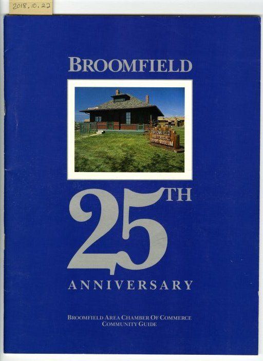 1 Broomfield Area Chamber of Commerce Community Guide and Membership Directory (25th anniversary). The guide includes information on past history and current development of Broomfield city.