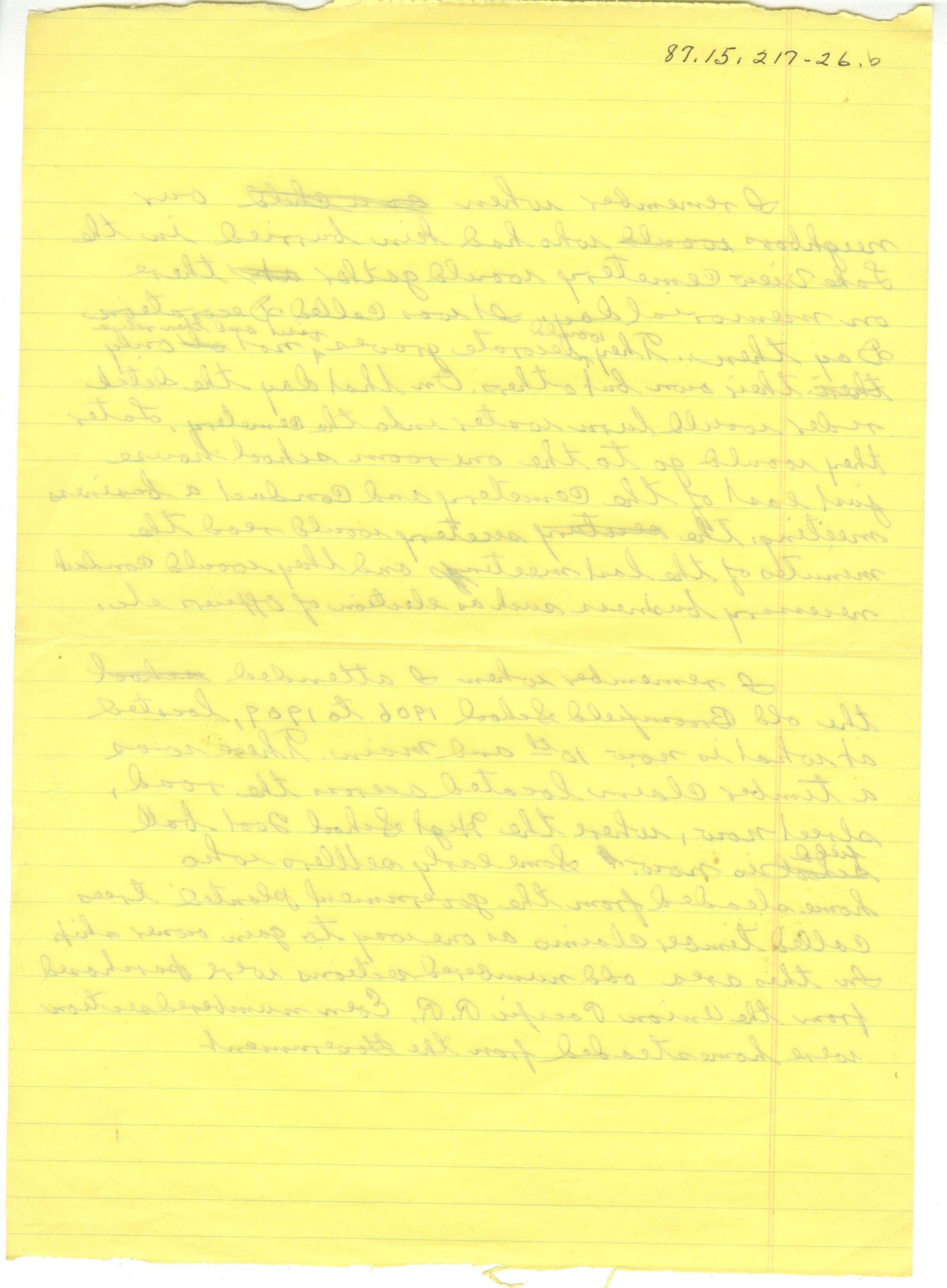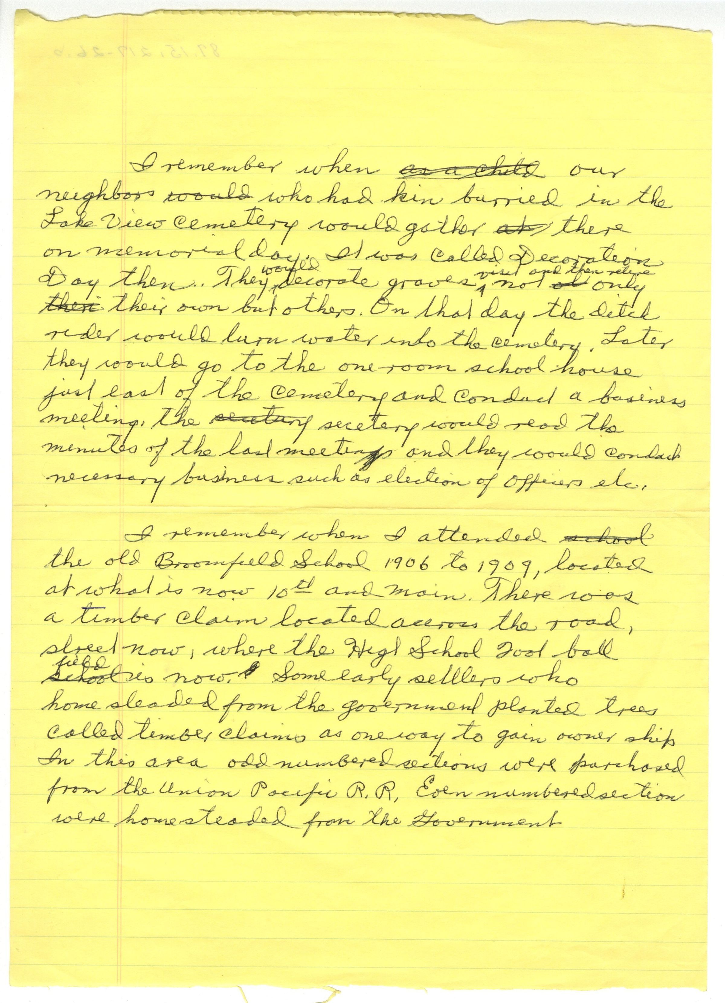 B: Yellow paper, lined. Handwritten, black pen, regarding history of early Broomfield.Collection