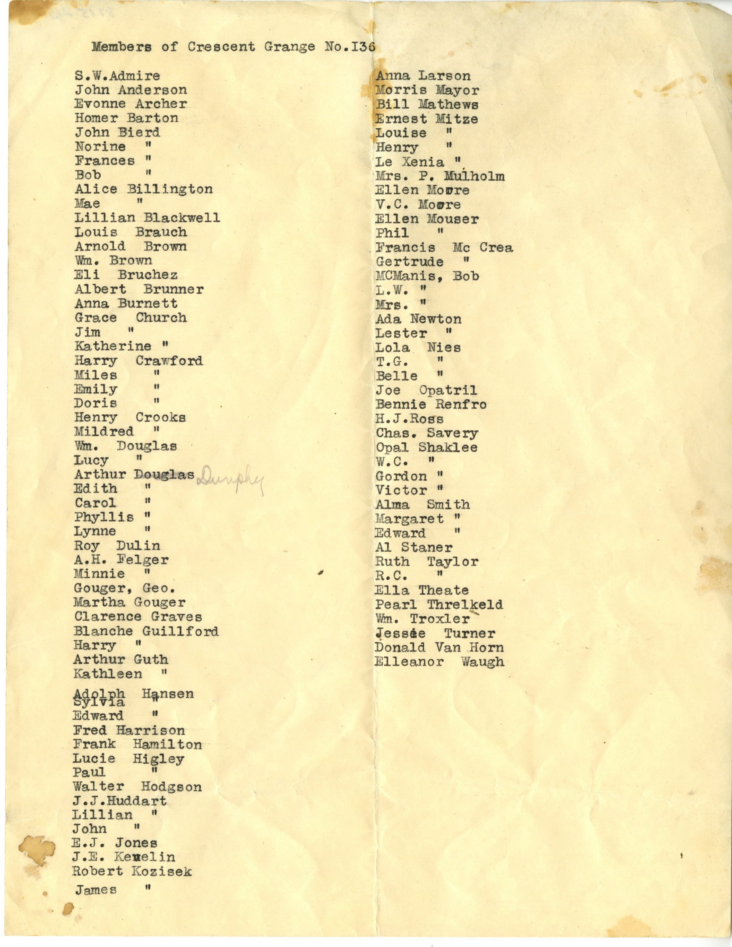 Grange Documents. See Notes.