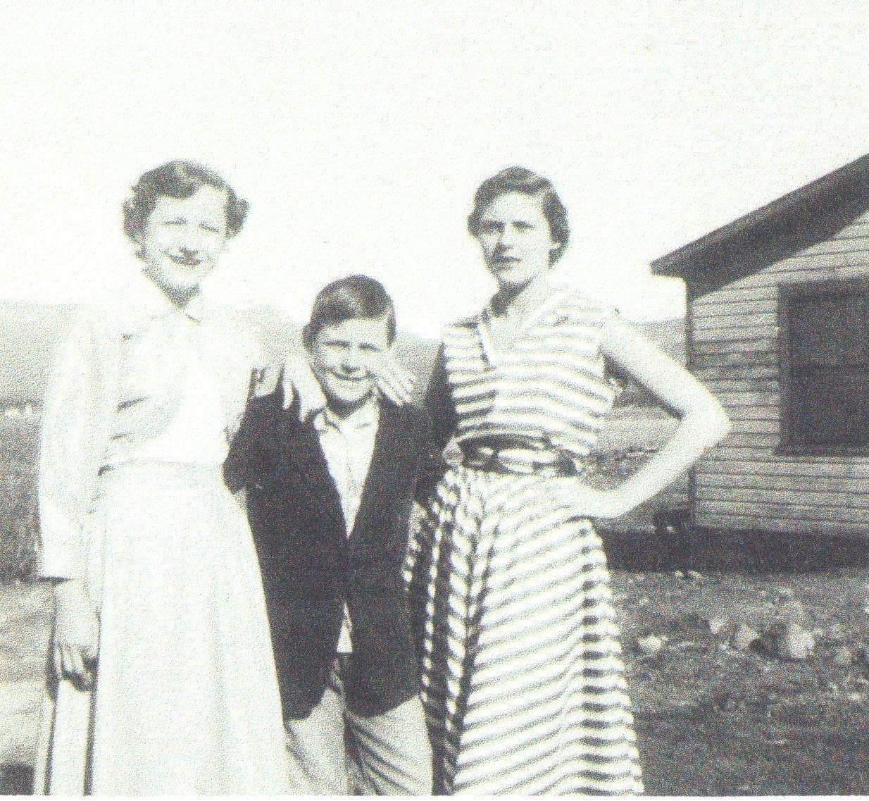 Left to right: Carole, Bert, and Virginia Ward in front of the railroad house they lived in while their dad worked for the Denver & Rio Grande Western Railroad in Malta, Colorado.Collection