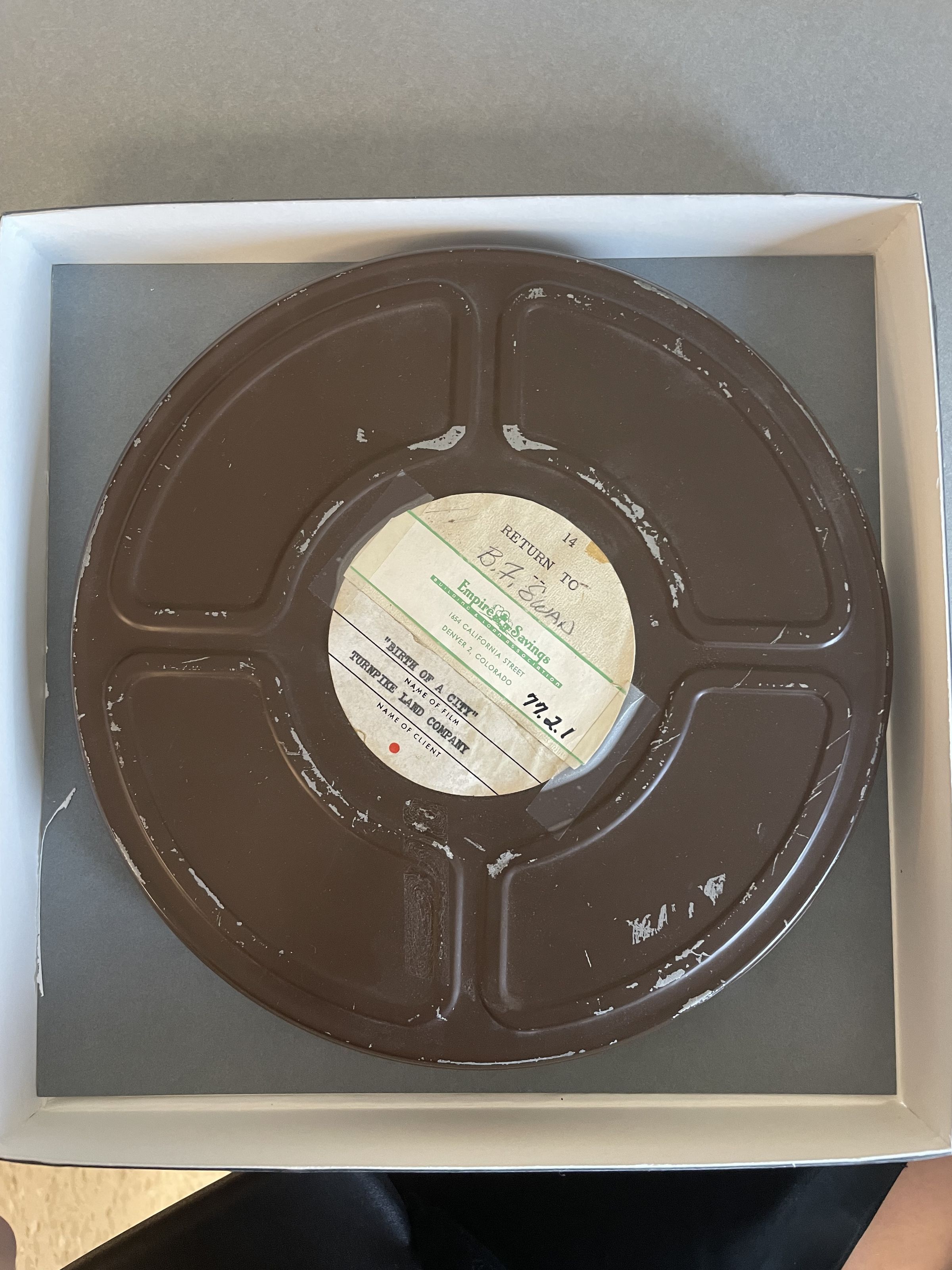 One 16mm film "Birth of a City." This film was used by Turnpike Land as a promotional for development of Broomfield. Narrated by Alex Drier and completed Nov. 23, 1956 and first used in New York at the National Association of Manufacturers in Dec. Also shown at House and Garden show in Denver.