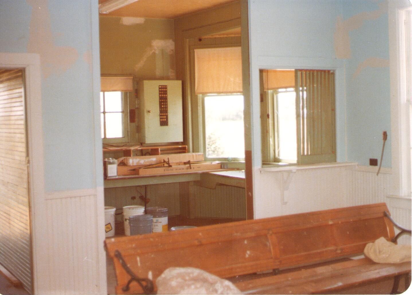 When asked to explain this image donor Karen McGuire described; "In waiting room, looking at agent's office. Bench was in building when it was moved."