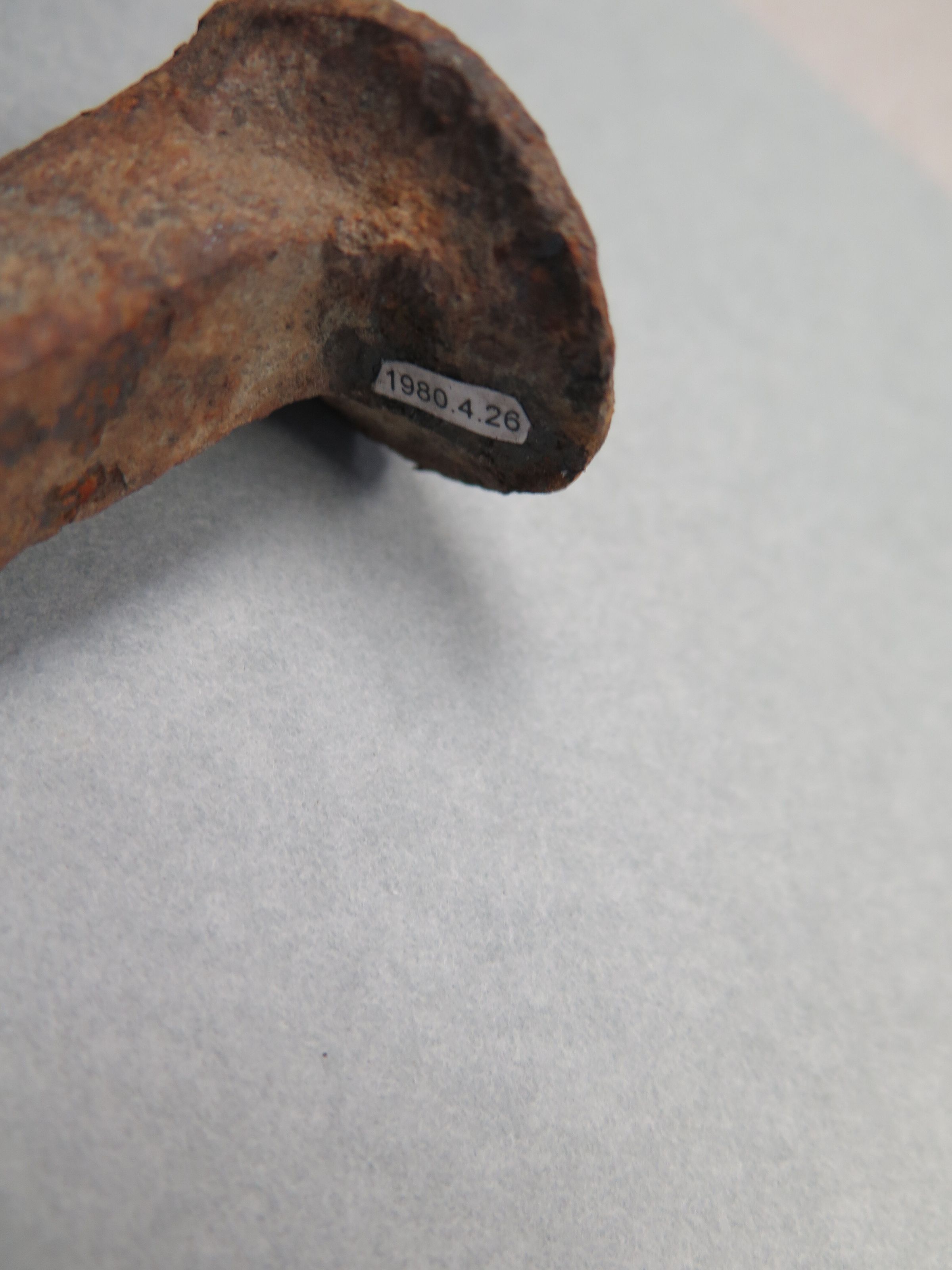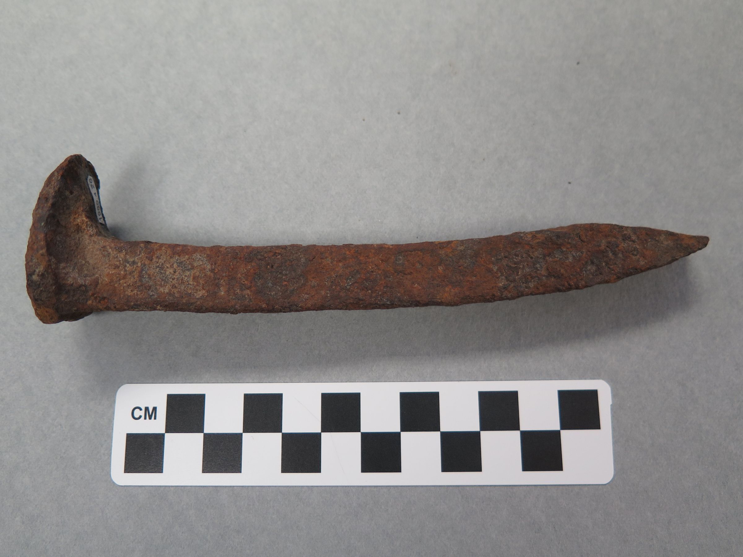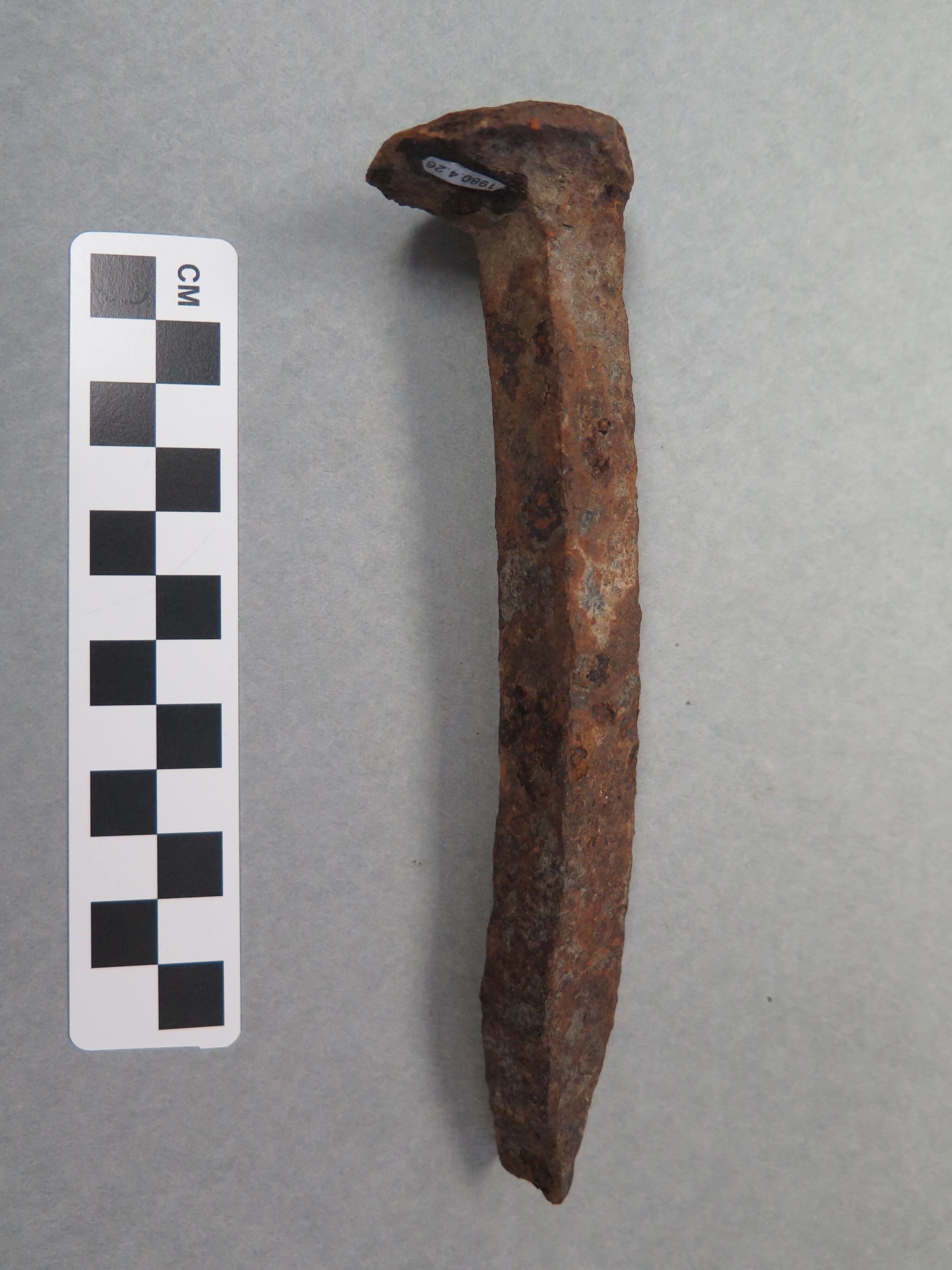 One side of rail spike.: Origsize: 1.25" (h) x 2" (w) x; Origformat: Artifact