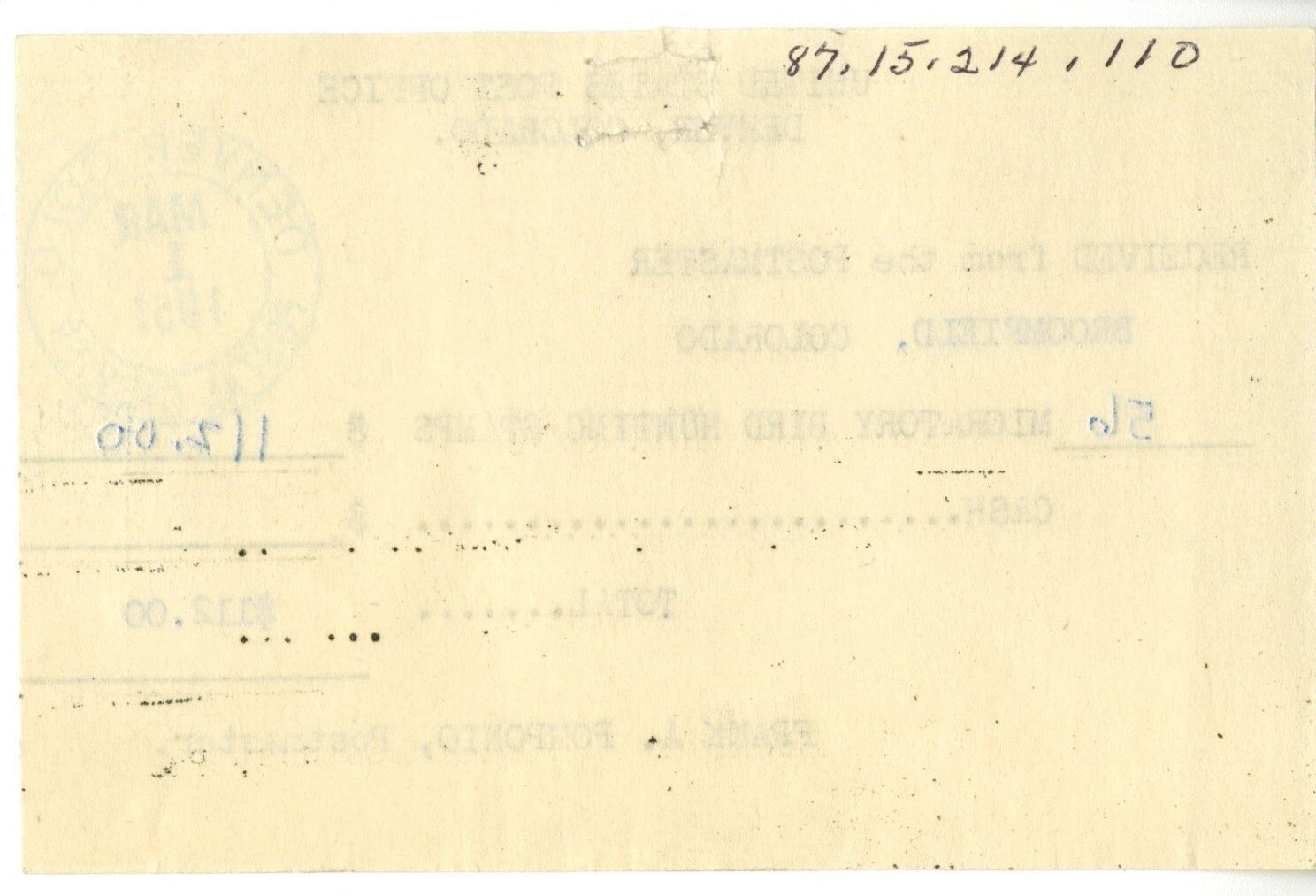 Stamped: "Denver Colo. Postal Cashier, Mar 1, 1951."Collection