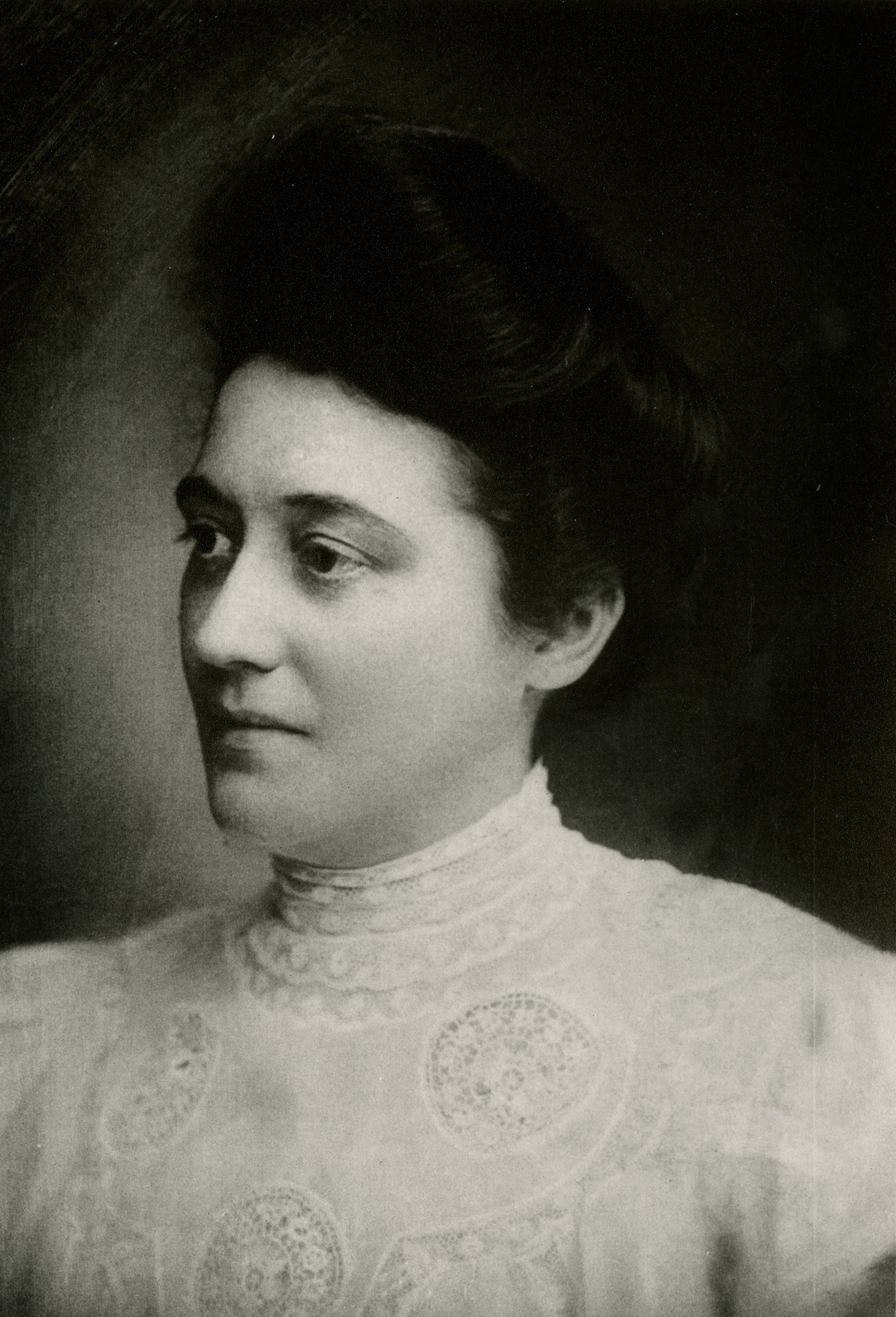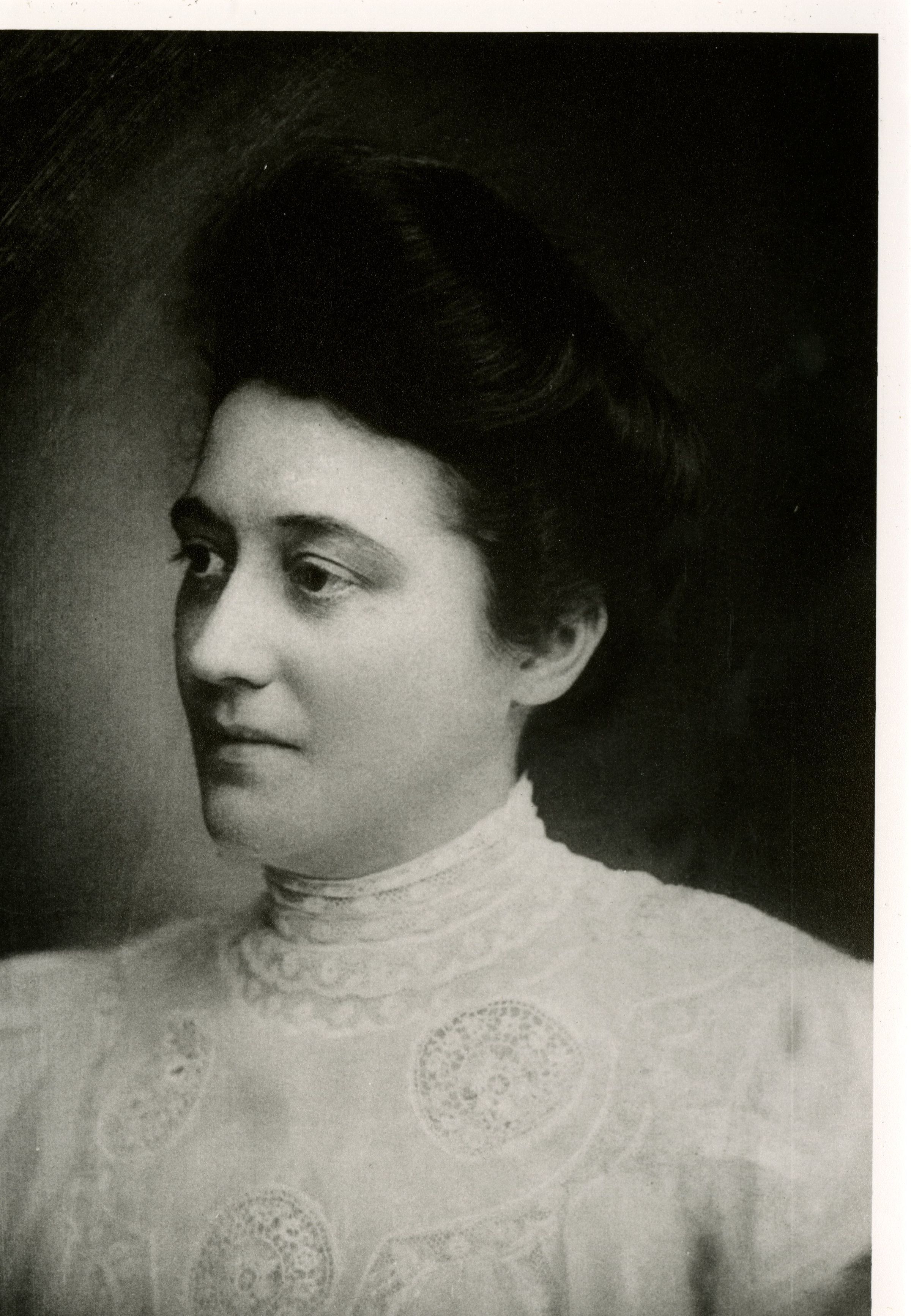 Scanned photograph copy of a portrait of Jeanne "Jeanie" Malott Hillen, circa 1890-1900. Jeanie was the wife of the Superior train depot's station agent, Robert H. Hillen, married August 4, 1892. She and Robert raised their grandson, Robert Hillen, for a few years at the live-in depot in the 1920s and 1930s.Photograph Details