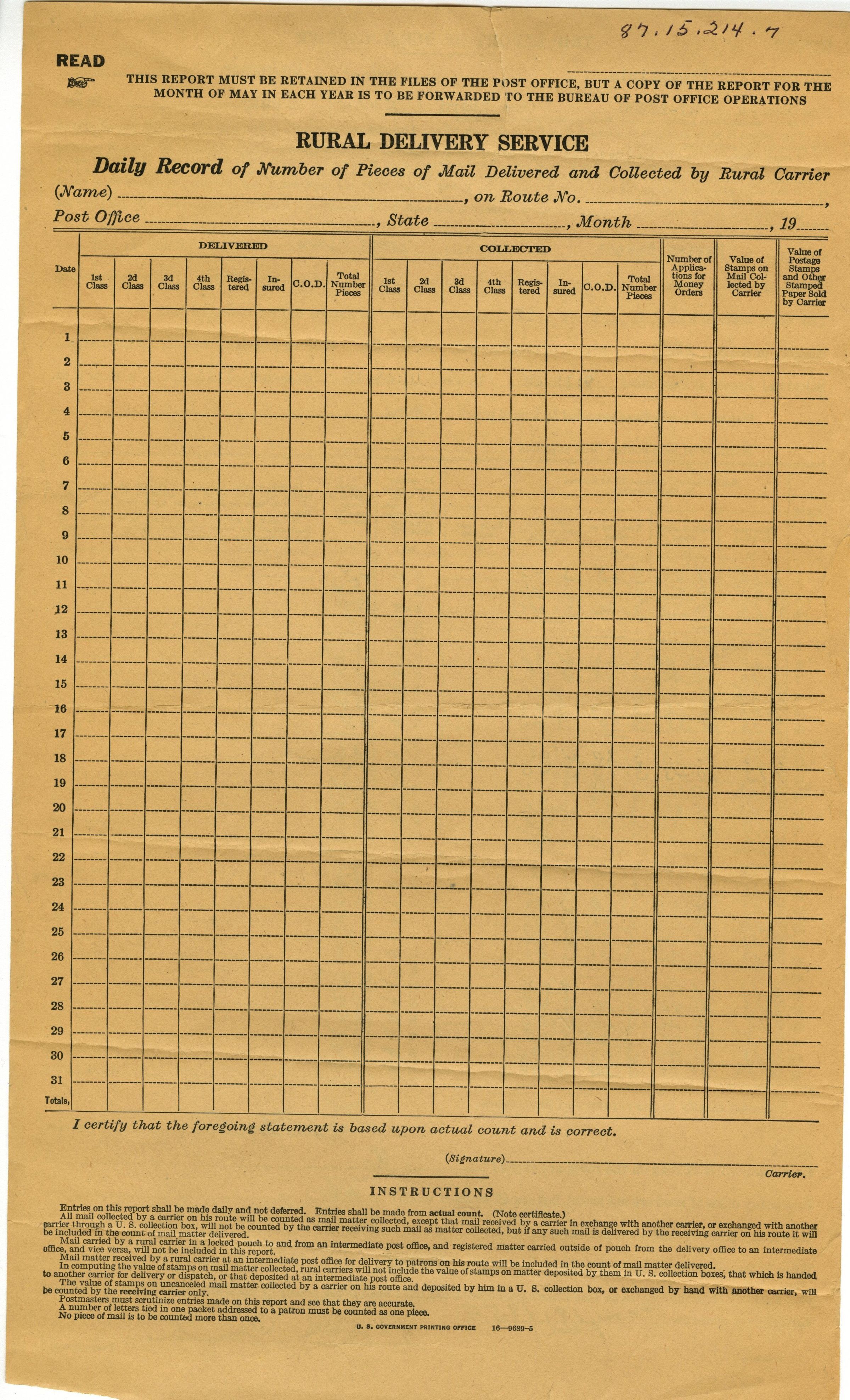 Trip Report of Rural Carrier.
