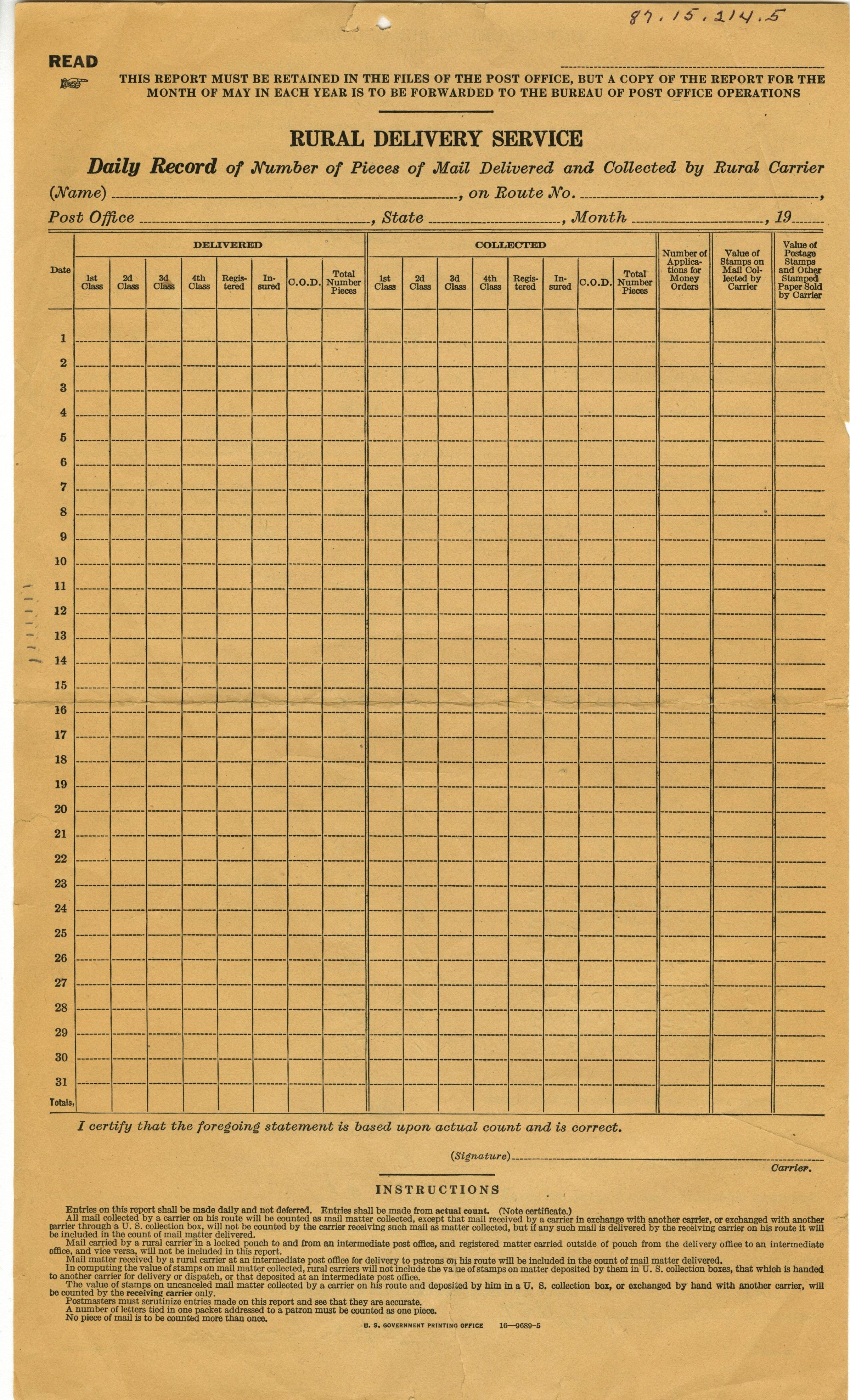 Trip Report of Rural Carrier.