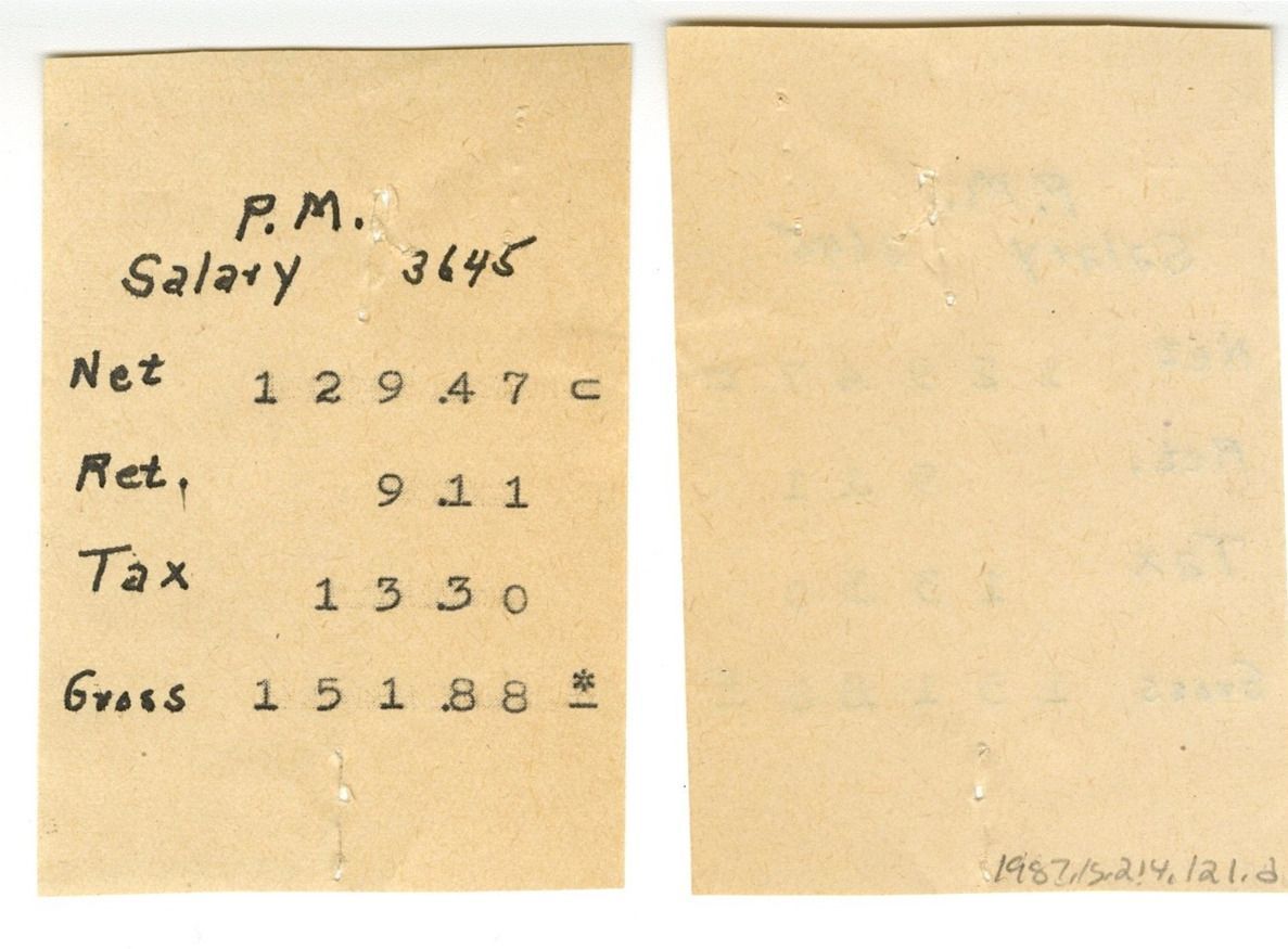 D: Small paper. P.M. Salary 3645. (between pages 8 & 9)
