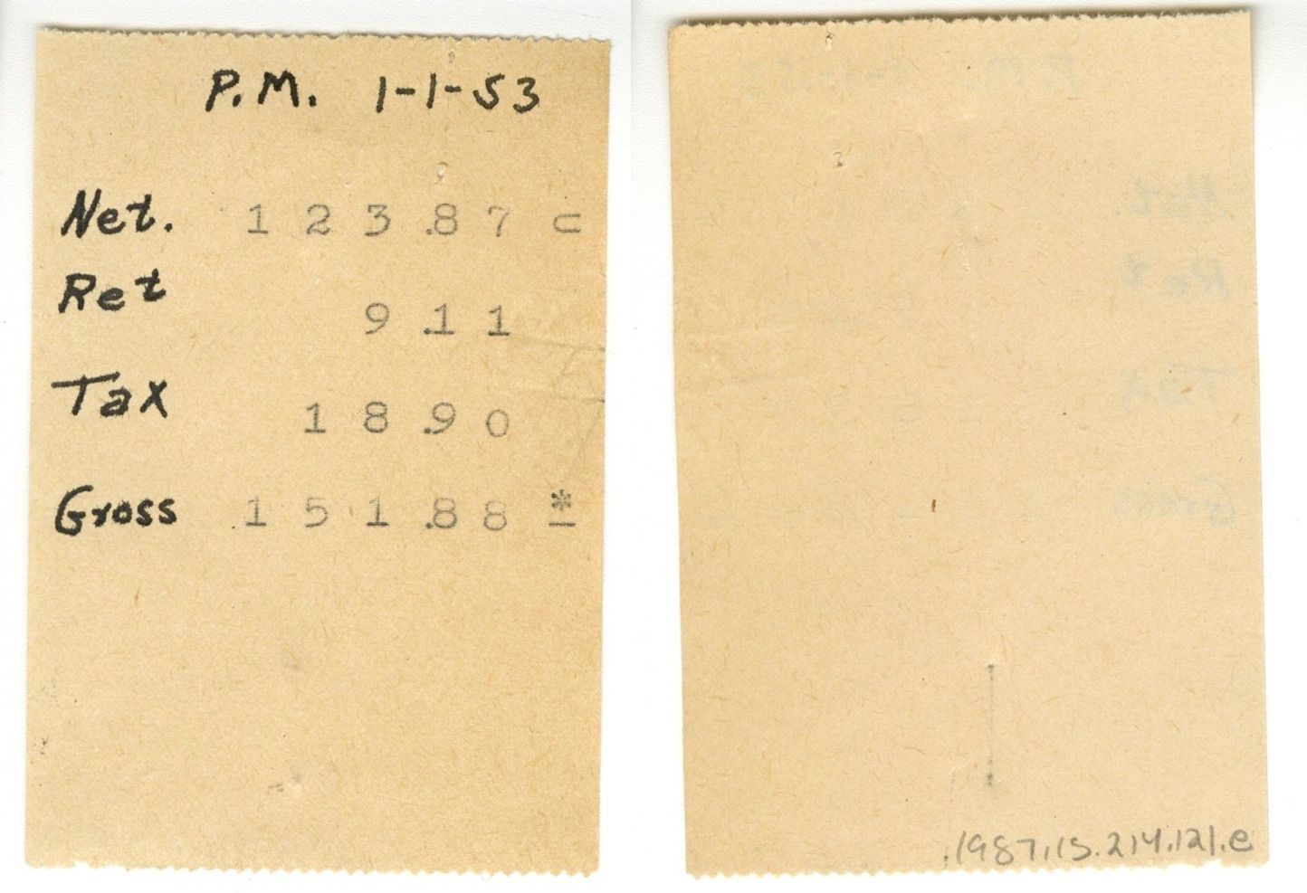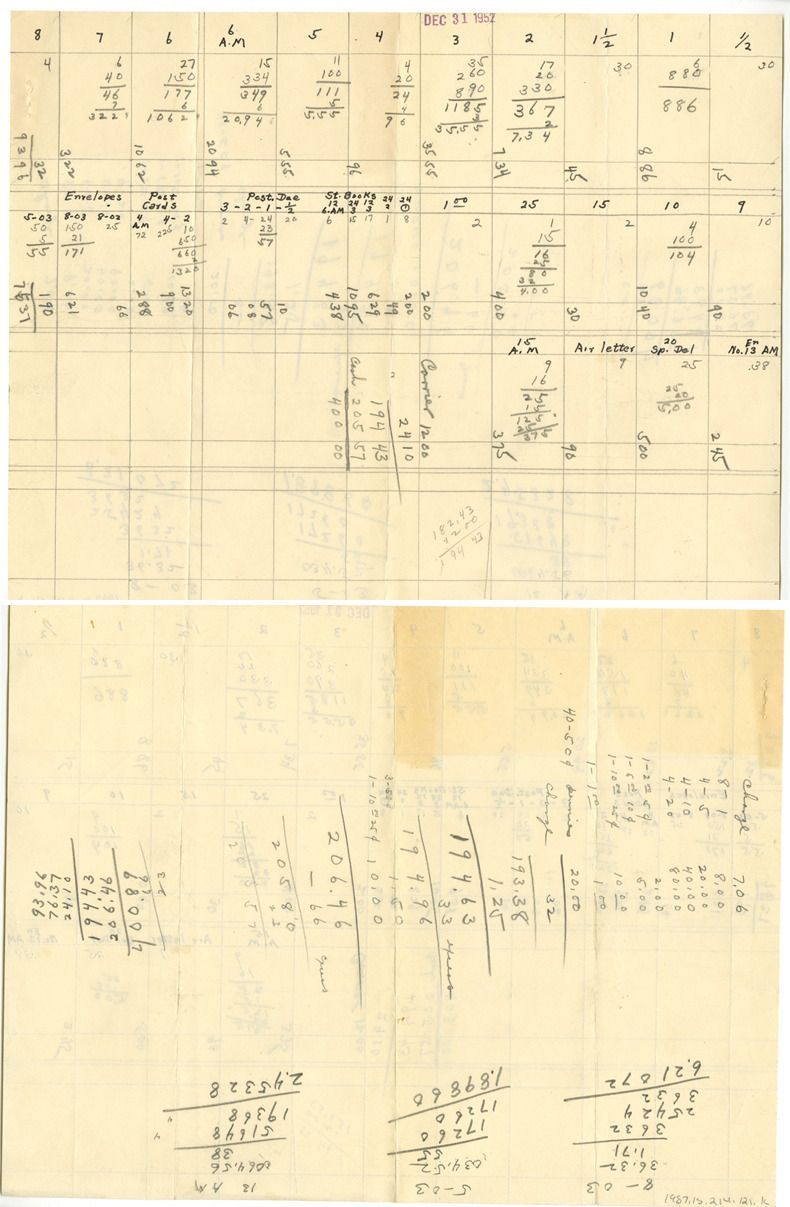 BB: Grided page of numbers, purple stamp: Dec 31, 1953.Collection