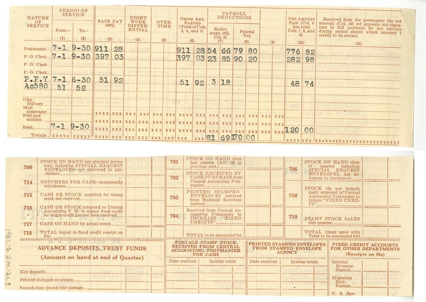 F: Quarterly Summary of Money Orders Issued, dated Sept. 30, 1952. (between pages 18 & 19)