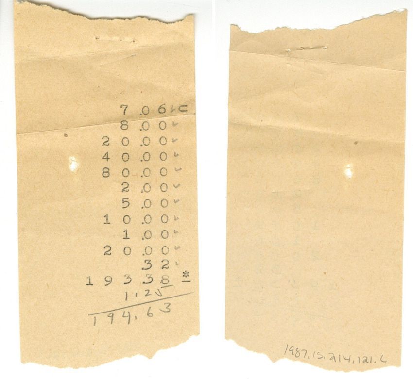 L: Small paper. Numbers equalling 194.63. (between pages 26 & 27)