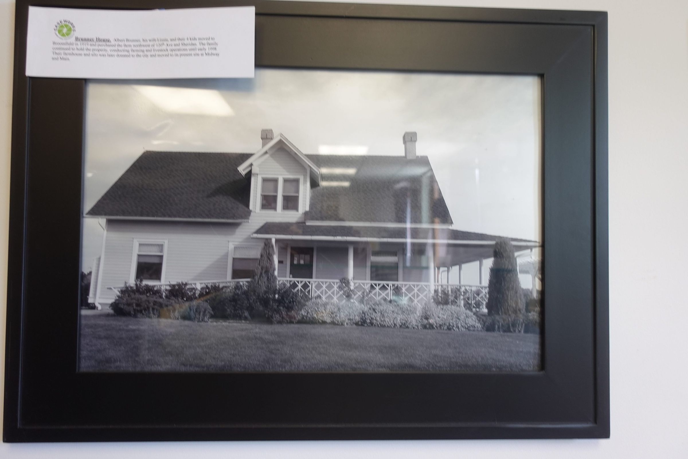 This is a modern Black and White photo of the Brunner House. Albert Brunner, his wife Lizzie, and their 4 kids moved to Broomfield in 1919 and purchased the farm northwest of 120th Ave and Sheridan. The family continued to hold the property, conducting farming and livestock operations until early 1998. Their farmhouse and silo was later donated to the city and moved to its present site at Midway and Main.