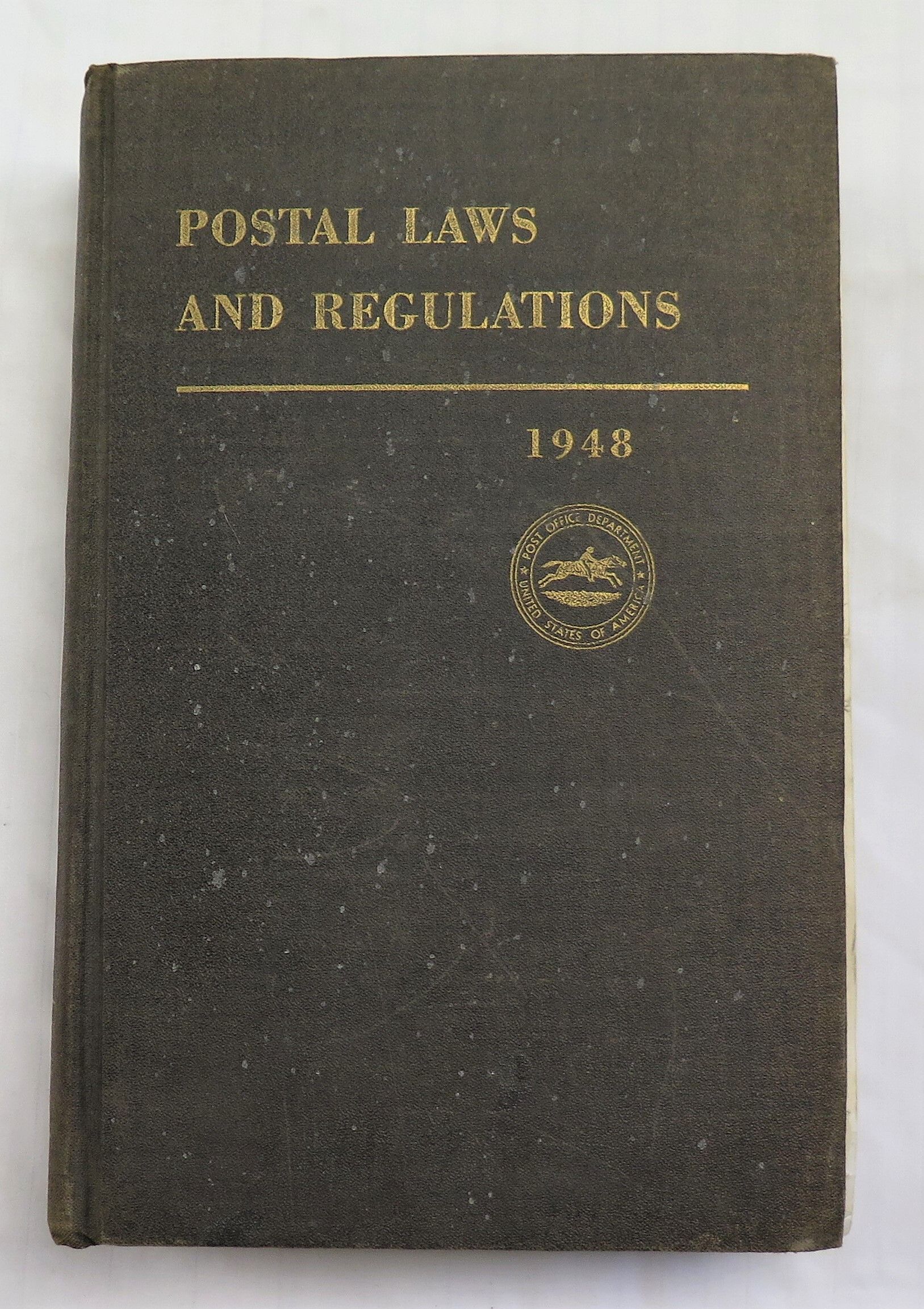 Dark brown cover, 961 pgs. Included in book was object B: "Amendment to the Postal Laws and Regulations" dated April 13, 1953. Notes are made in margins throughout book.Collection