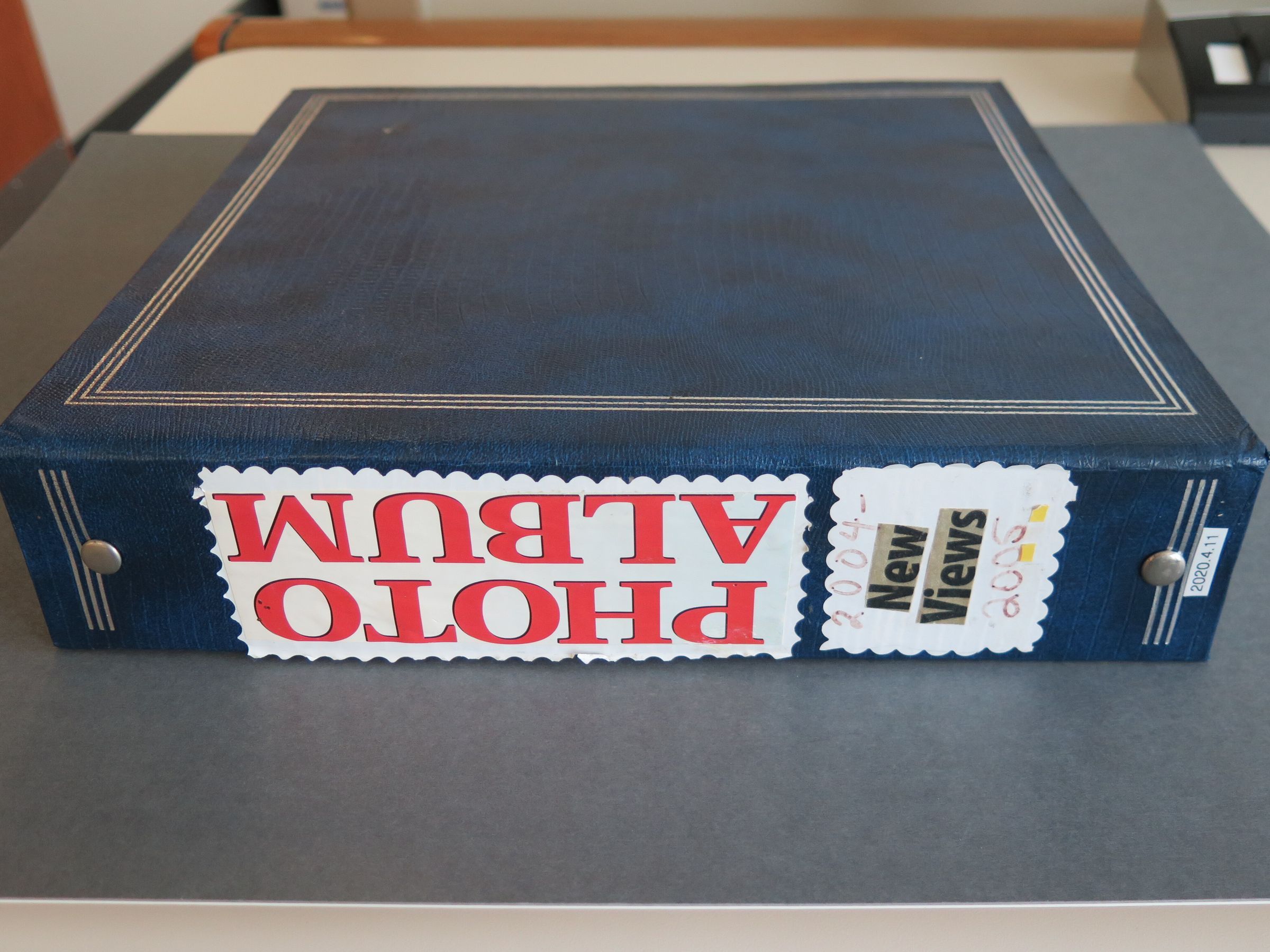 Scrapbook with blue cove, Silver border, side reads "Photo Album, 2004-2005, News Views. Senior Center history. Words to "Mairzy doats". Memorial card for Gordon Bennett. Off the cuff remarks by Plotr Podajko, Jack McMaster, Al Rorabaugh, Henry Ernst, Jim Beckton, Norma Hough. Meals on Wheels, Broomfield Senior Center, Curly. Newspaper article, Nurse Alice Lyon, treated German POW's. Obituary Alie Lyon. Paul Murphy, USS INdianapolis survivor. Sandy Osborne, US Coast Guard. Program for Spirits & Spooks, A Wine/Micro Brew Tasting & Silent Auction, October 29, 2004, fundraiser for Broomfield Senior Services & Scholarship Fund. Program for 2004 Heart of Broomfield Awards and the Broomfield Community Foundation, 2004 Grants Celebration. Bob Davis, Vic Boccard, Jennis Belval, Tina Lynn-Craig, Joe & Carol Dankey, Caitlin Moroze, Gina Coufal, Jackie Mensing, Sgt. Dan Schuler retirement. 2004 Board members, Voting centers, Dick and Marti Allen 50th wedding anniversary, Sophie's 90th Birthday. Freedom to Ride, Broomfield Senior Transportation Education Program. Obituary, Alfred Brown, Alice Shonkwiler, Doanld Ray Kanost, Melvin McKinley, Dean Calvin. Bob Schaffer (congressman), Senior Recourse, cel phone fundraiser, Ralph Johnson, Dale Munson, Easter bonnett and egg hunt, Anne and Peter Crouse, Reva and Ed Ehmen, Ron and Barbara Wolff, Senior's Prom, Silver Sneakers, National Grandparents day, Martin and Doris Small, obituary Carol Joan Humphreys Smith, Donald Davis, Danuta Skirmants, Gordon Bennett, The Jammers, Bob and Paty Davenport, Broomfield Bash, Blanche Illsley, Joe and Ruth Lemmo, Senior Olympics, Paul Murphy, Easyride, Broomfield Senoir Highlights, thank you cards to Suzanne.Lexicon