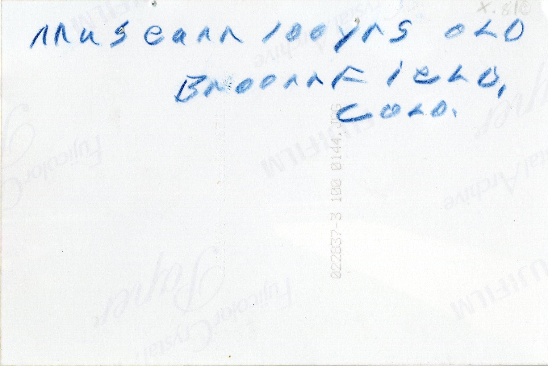 An inscription in blue pencil on the back reads: "Museum 100 yrs Old Broomfield, Colo."Collection