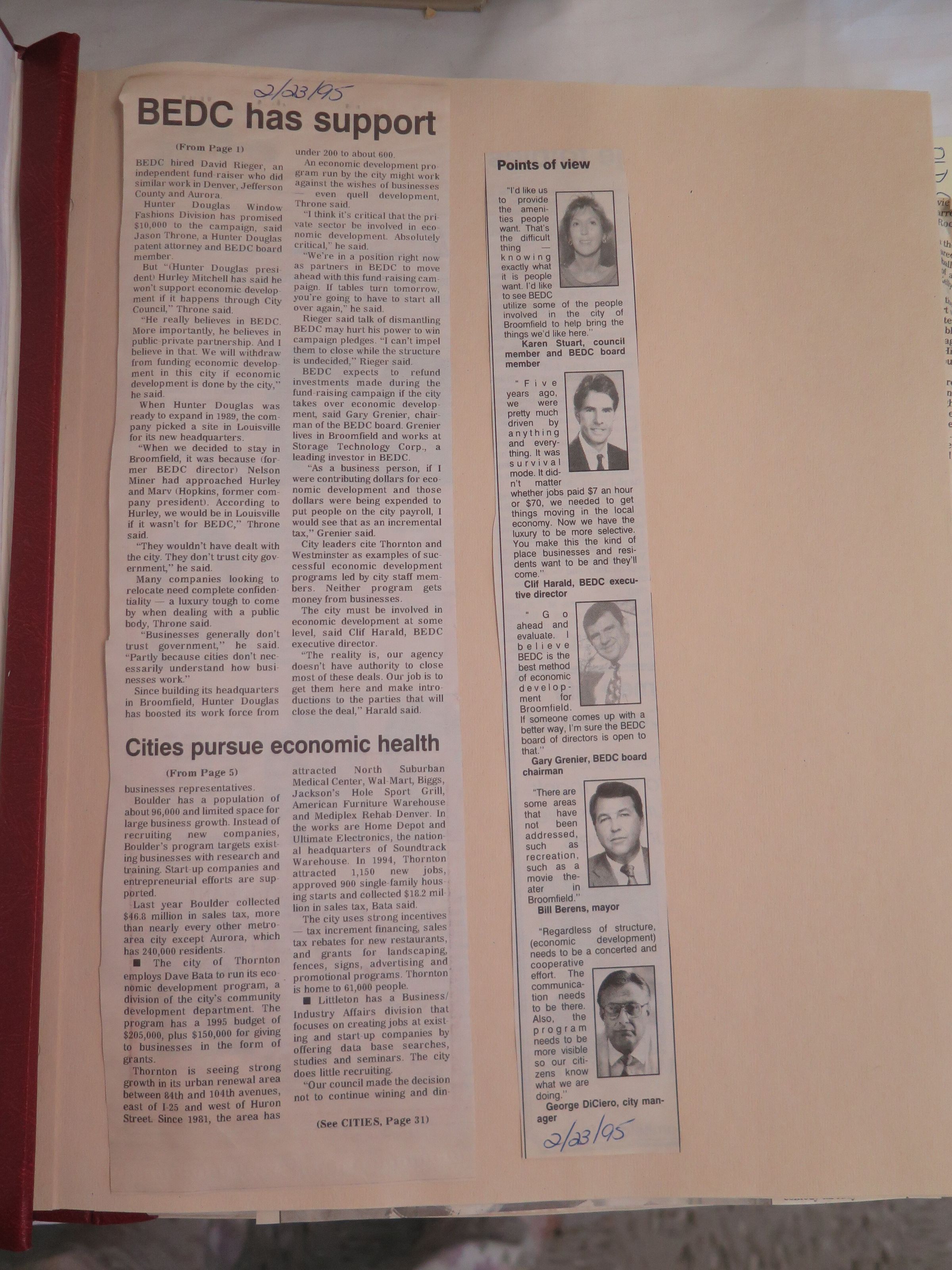Scrapbook of Broomfield newspaper articles from October 1994 - February 1995