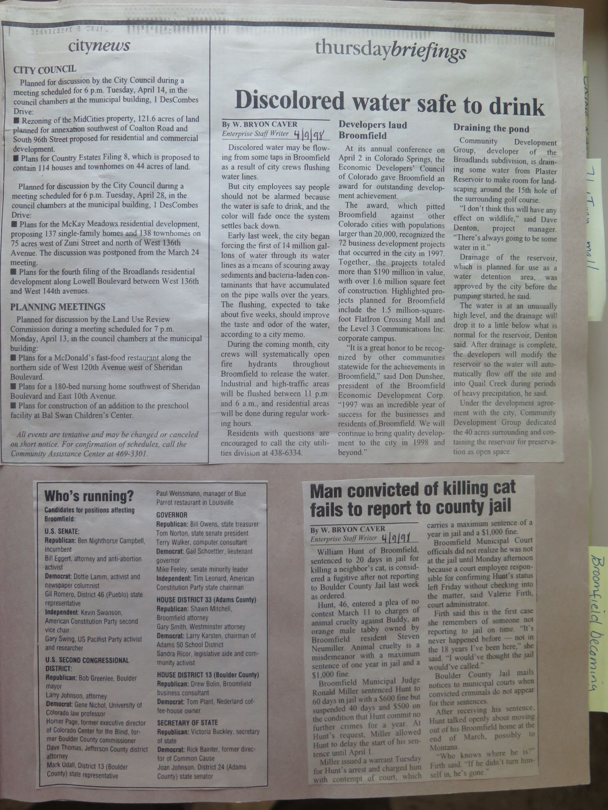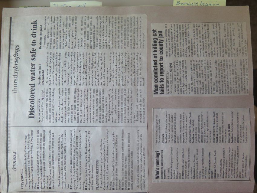 Scrapbook of Broomfield newspaper articles from Apr 1998- Aug 1998