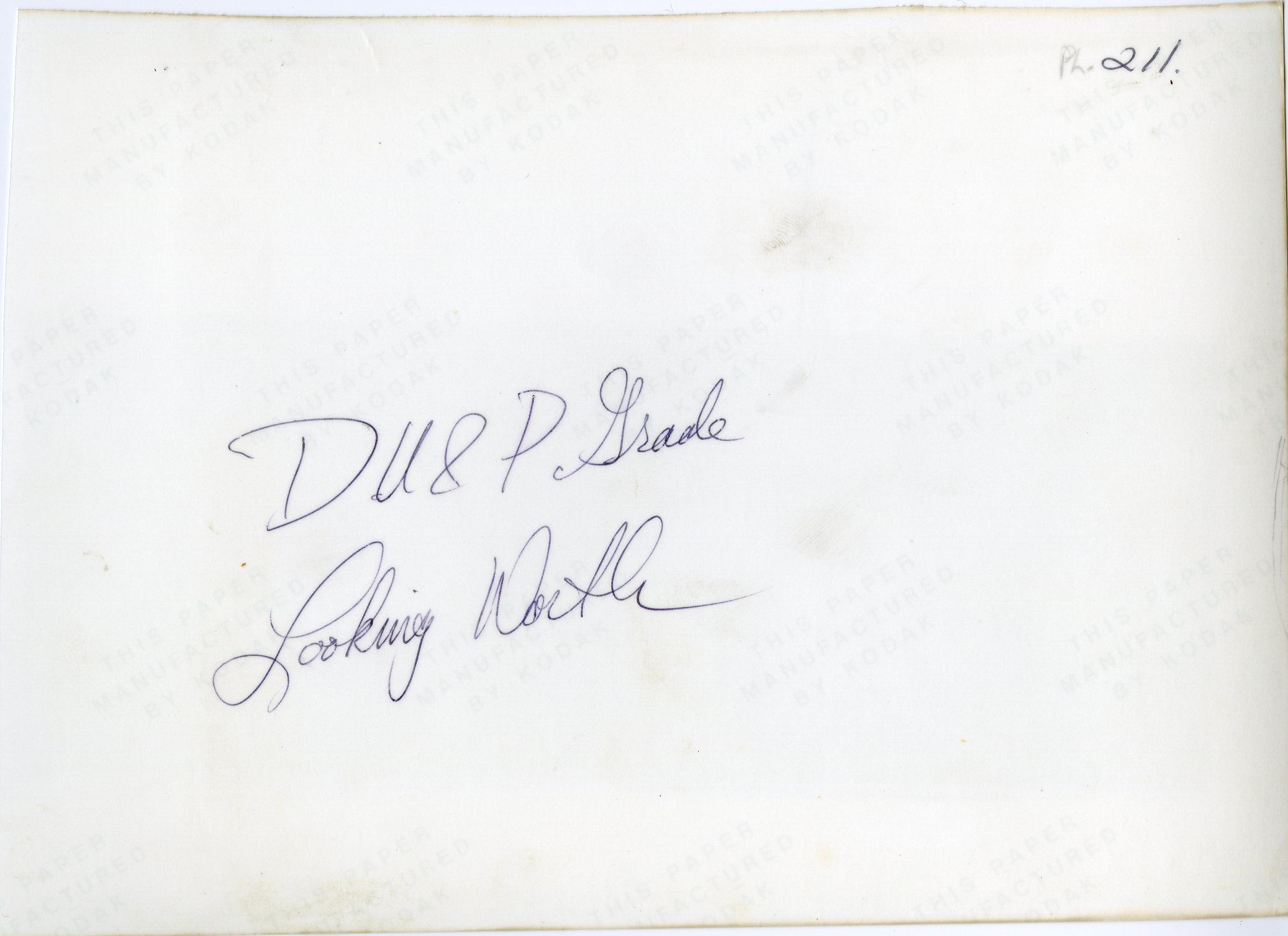 The reverse side has inscription in black ink, stating "DU&P Grade Looking North."Photograph Details