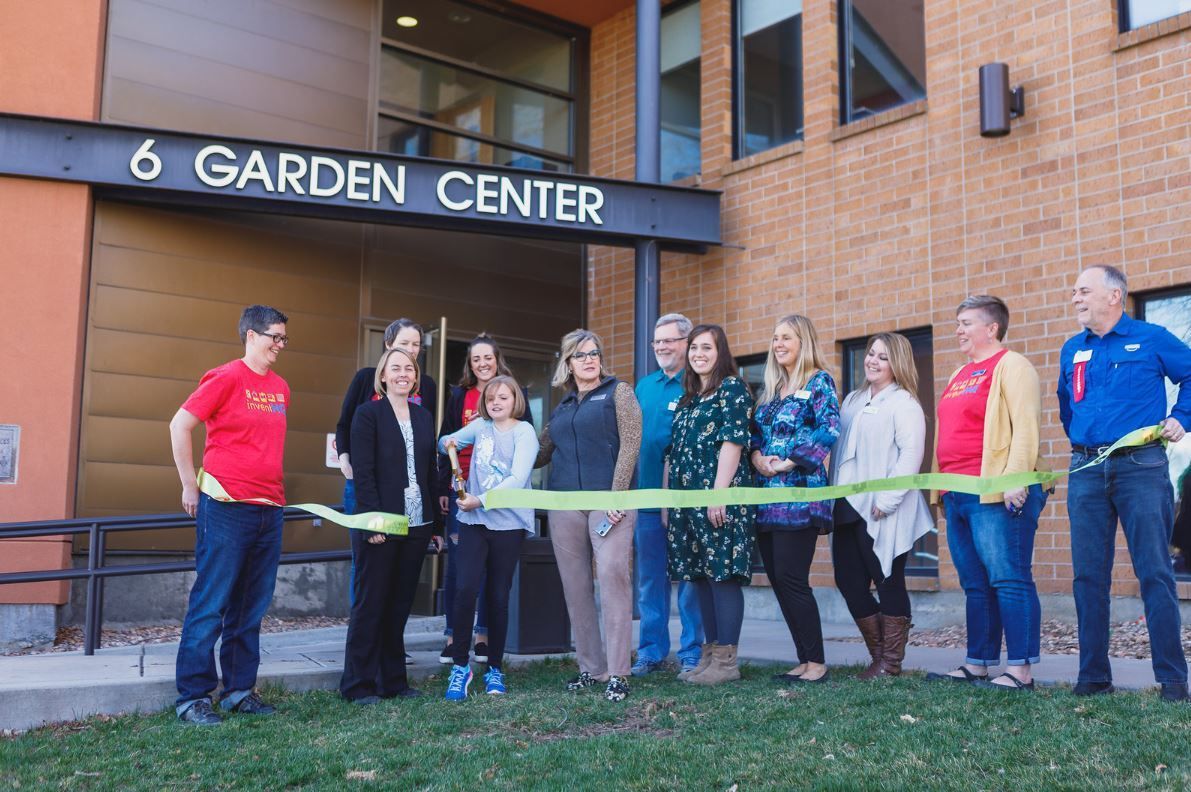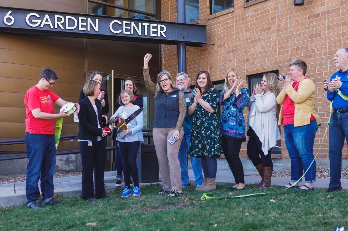 This is a pale green ribbon with gold colored text printed on it that reads, "access/ BROOMFIELD/ CHAMBER" with the logo printed to the left of the text. The ribbon was used during the ribbon cutting for 6 Garden Center on the Grand Opening on April 14, 2018. The ribbon was cut by the daughter of Abby Yellman, Director of Library Services and Cultural Affairs for the City and County of Broomfield. The ribbon measures 3.25" (h) x 2.5" (diam) when rolled.Collection