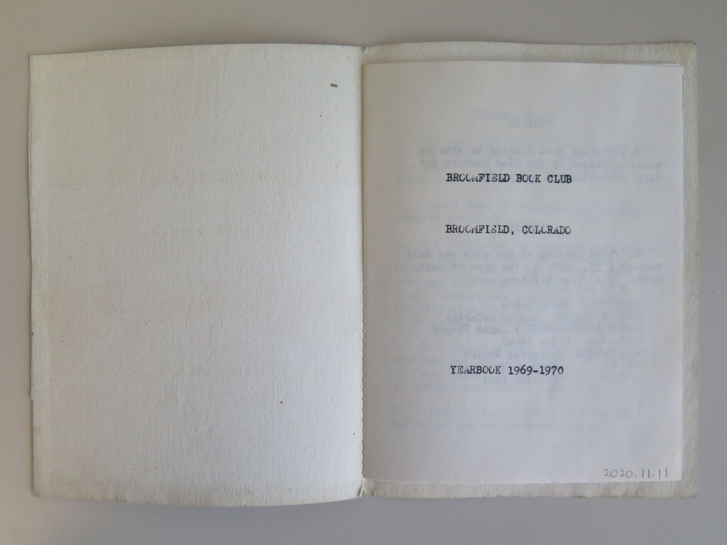 1969-1970 Broomfield Book Club YearbookEntry/Object ID