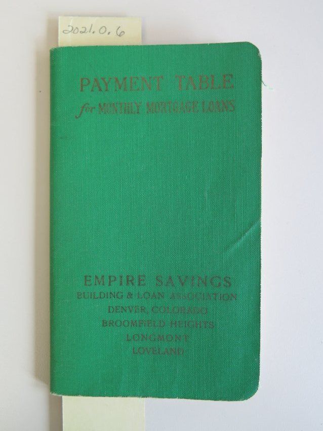 Empire Savings Building & Loan Association. Denver, Broomfield Heights, Longmont, Loveland. Showing monthly payment required to amortize a loan in a given number of years.