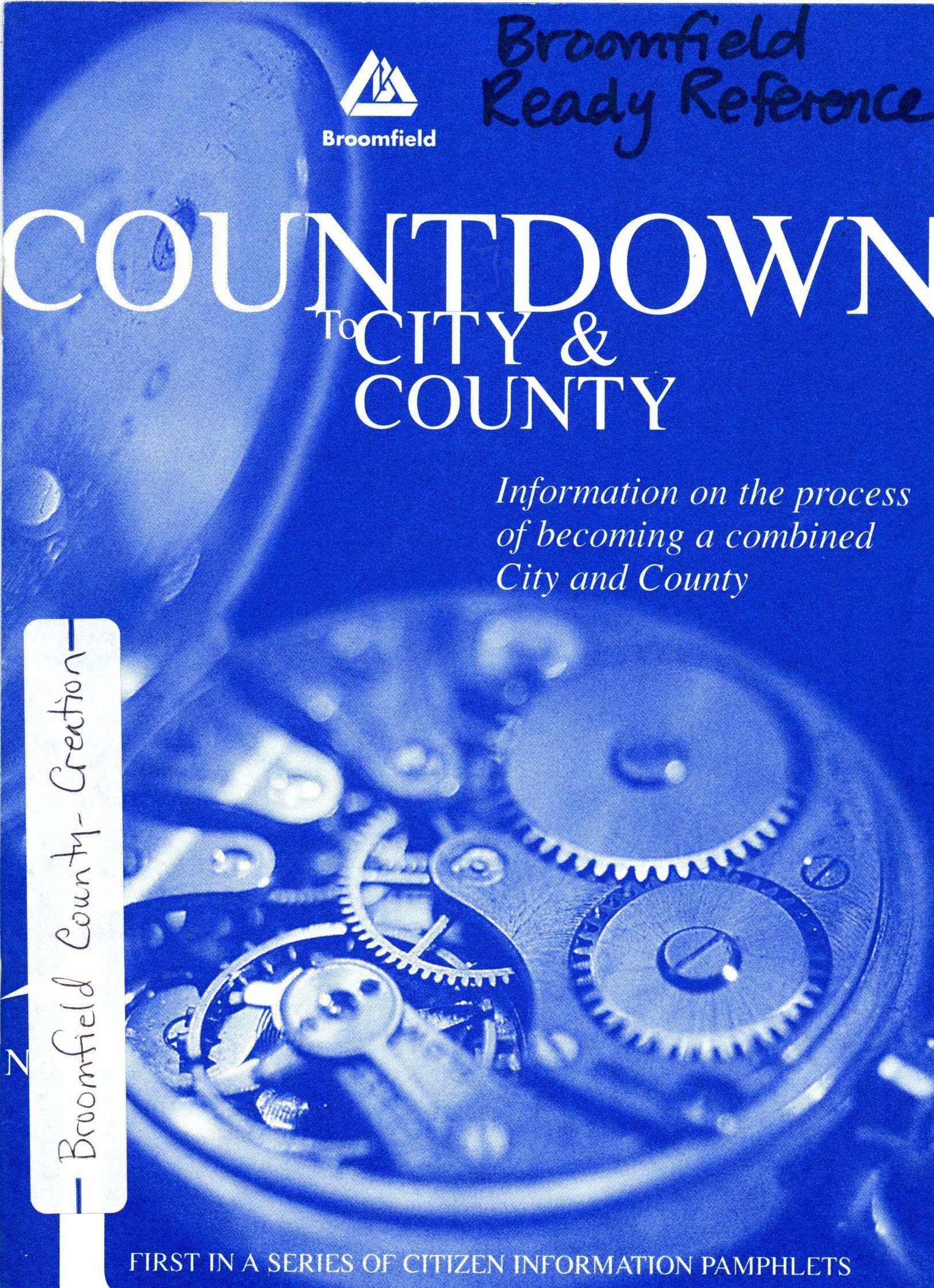 Information on the process of becoming a combined City and County. Countdown to City & County Booklet made on November 15,2001