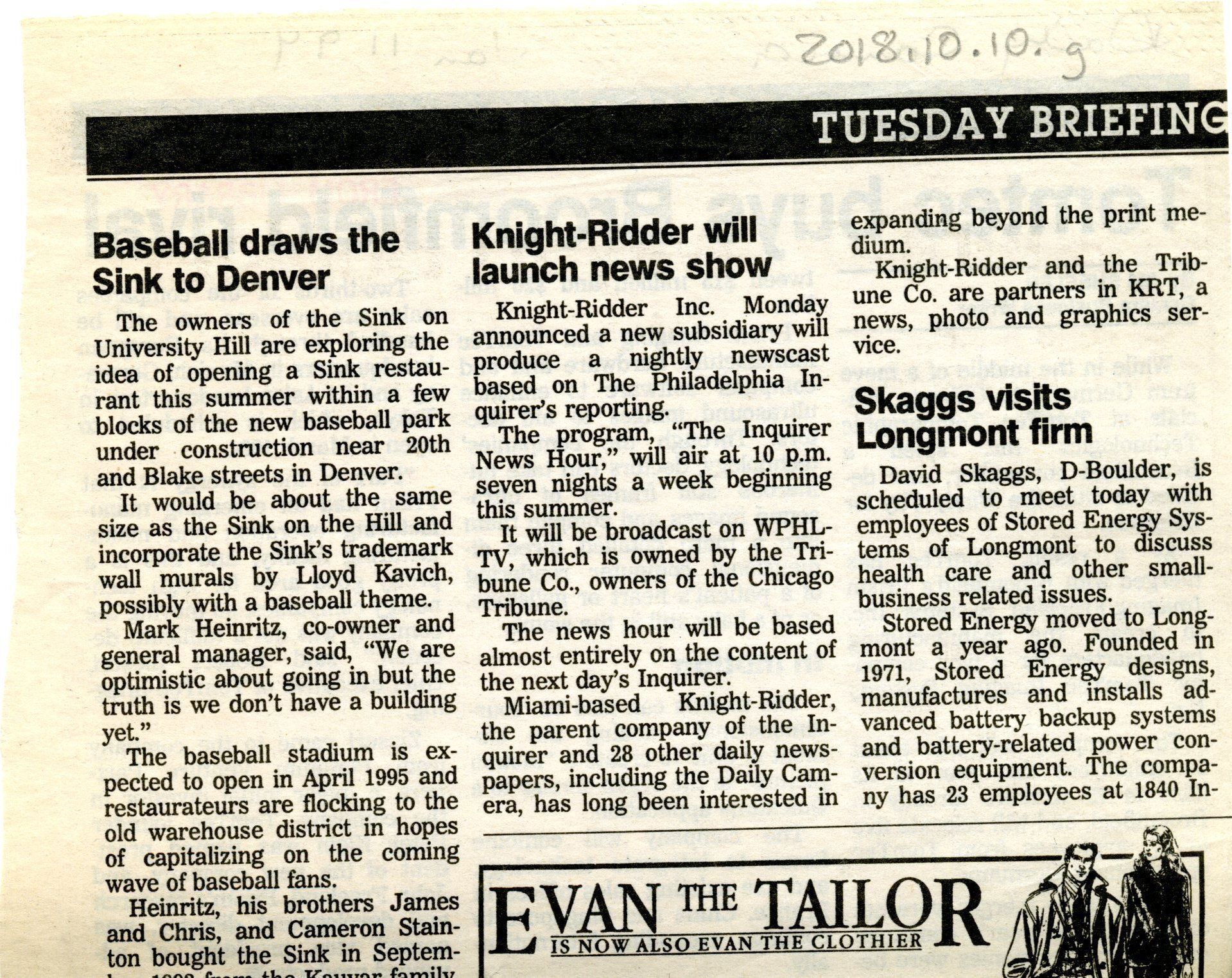 Article is cut out from the Daily Camera. Article is about the merger of TomTec Tomographic Technologies, Inc. with Prism Imaging/Freeland Systems, Inc. Article created on January 11, 1994
