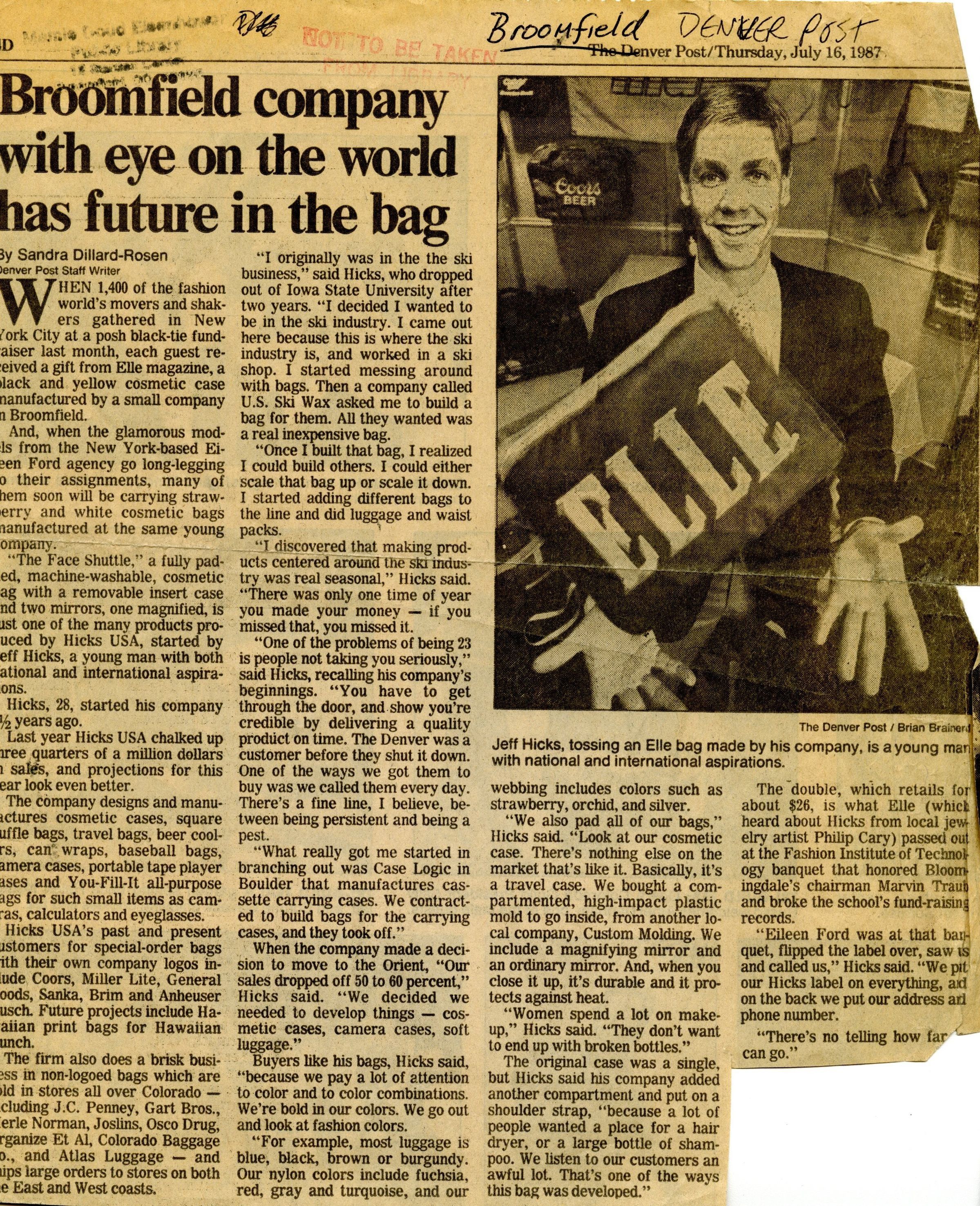 Article cut out from The Denver Post. Article is about a Broomfield company "Hicks USA". Article was created on July,16, 1987