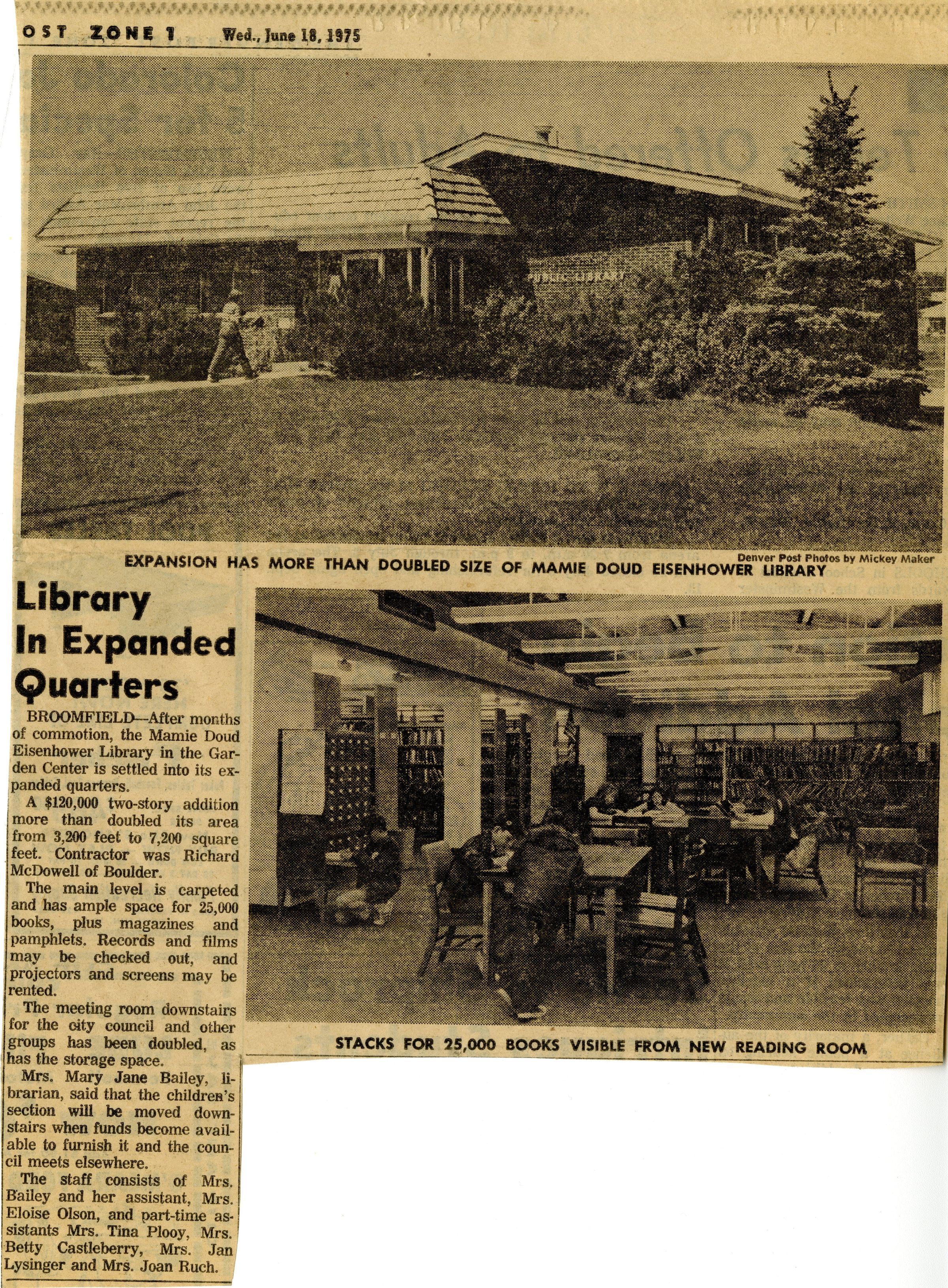 Article is about the new expansion to the Mamie Doud Eisenhower library at 12 Garden Center Describes building, and some improvments from the increase in money. Article published on June 18, 1975