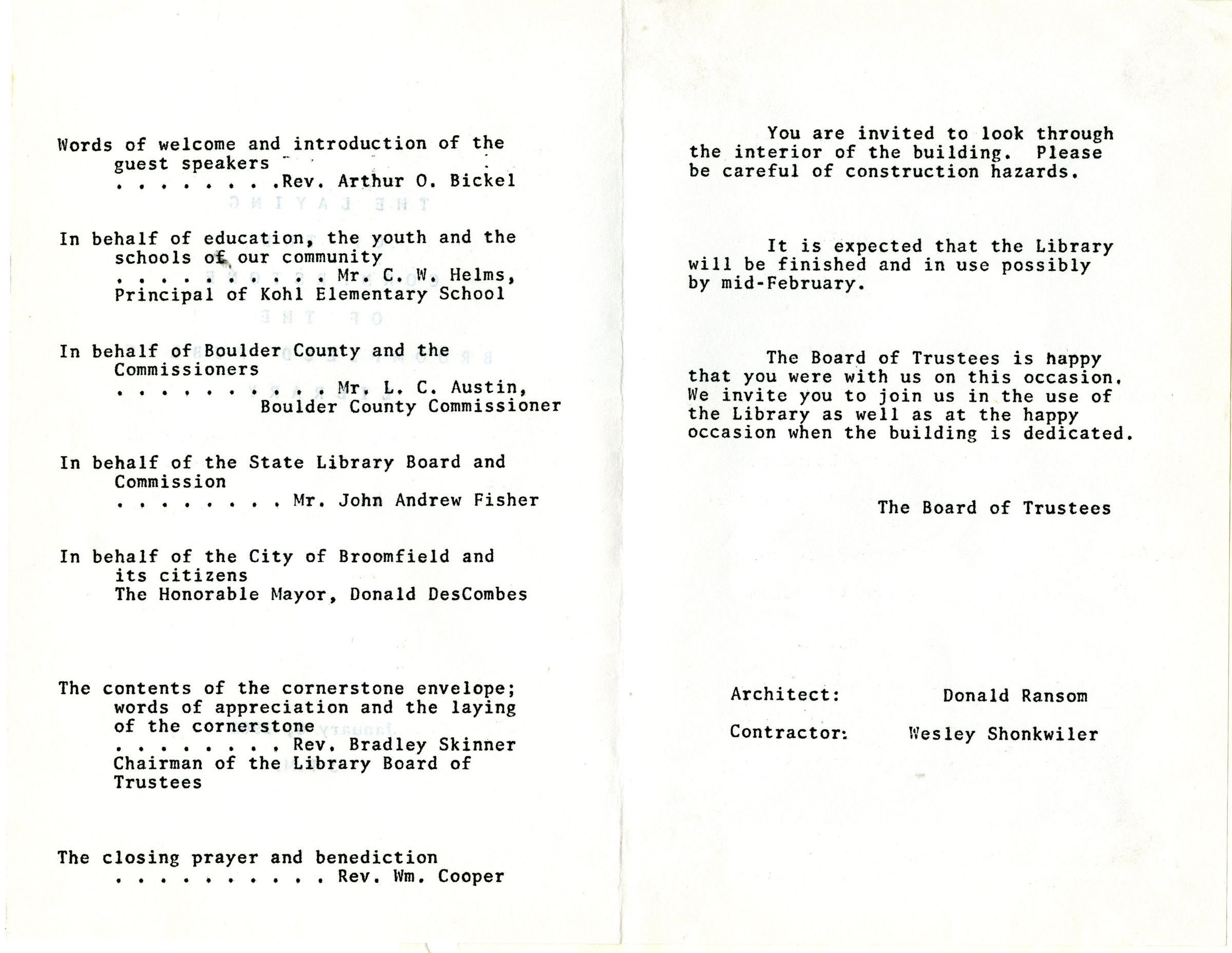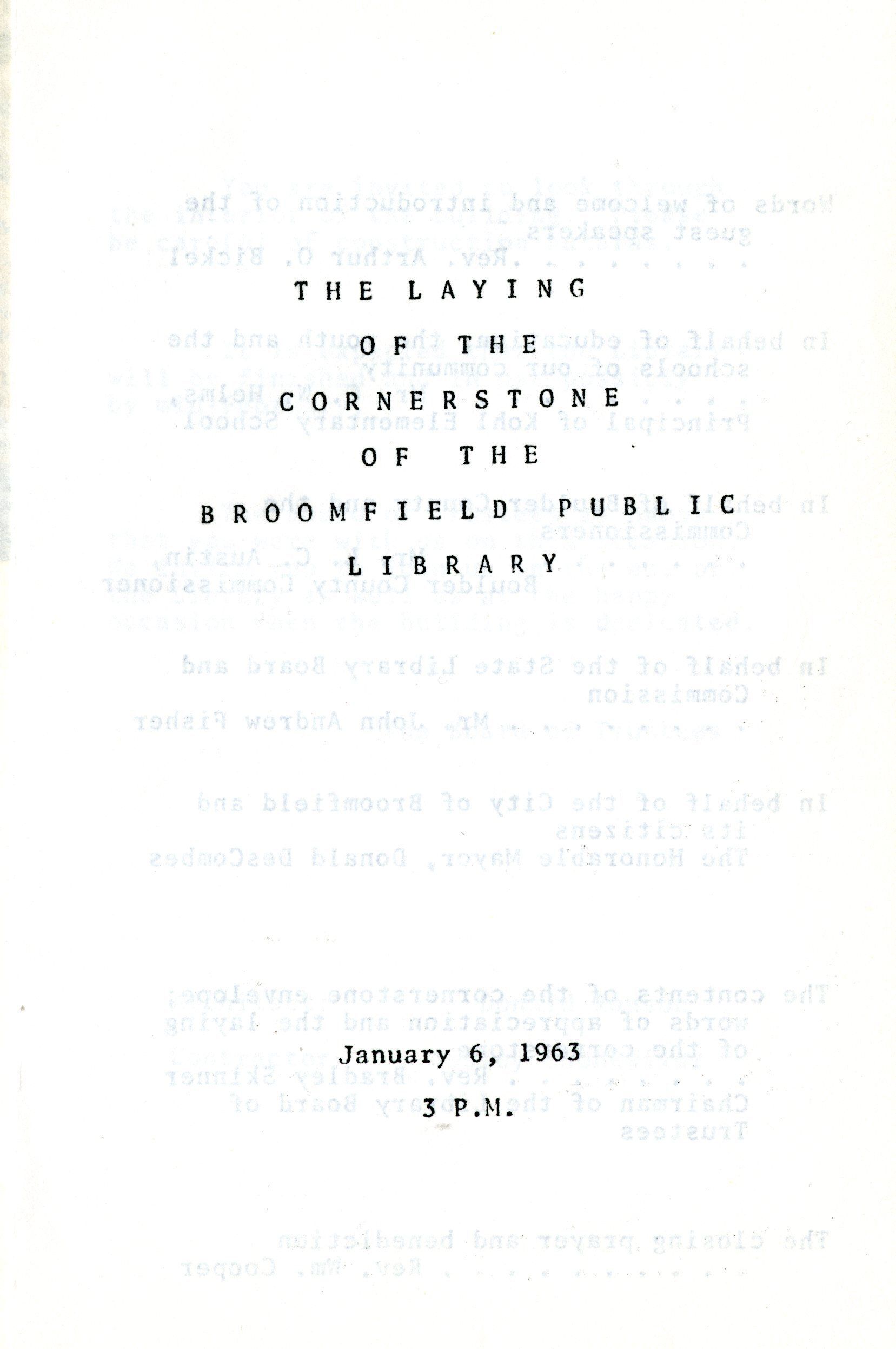 The Laying of the Cornerstone of the Broomfield Public LibraryEntry/Object ID