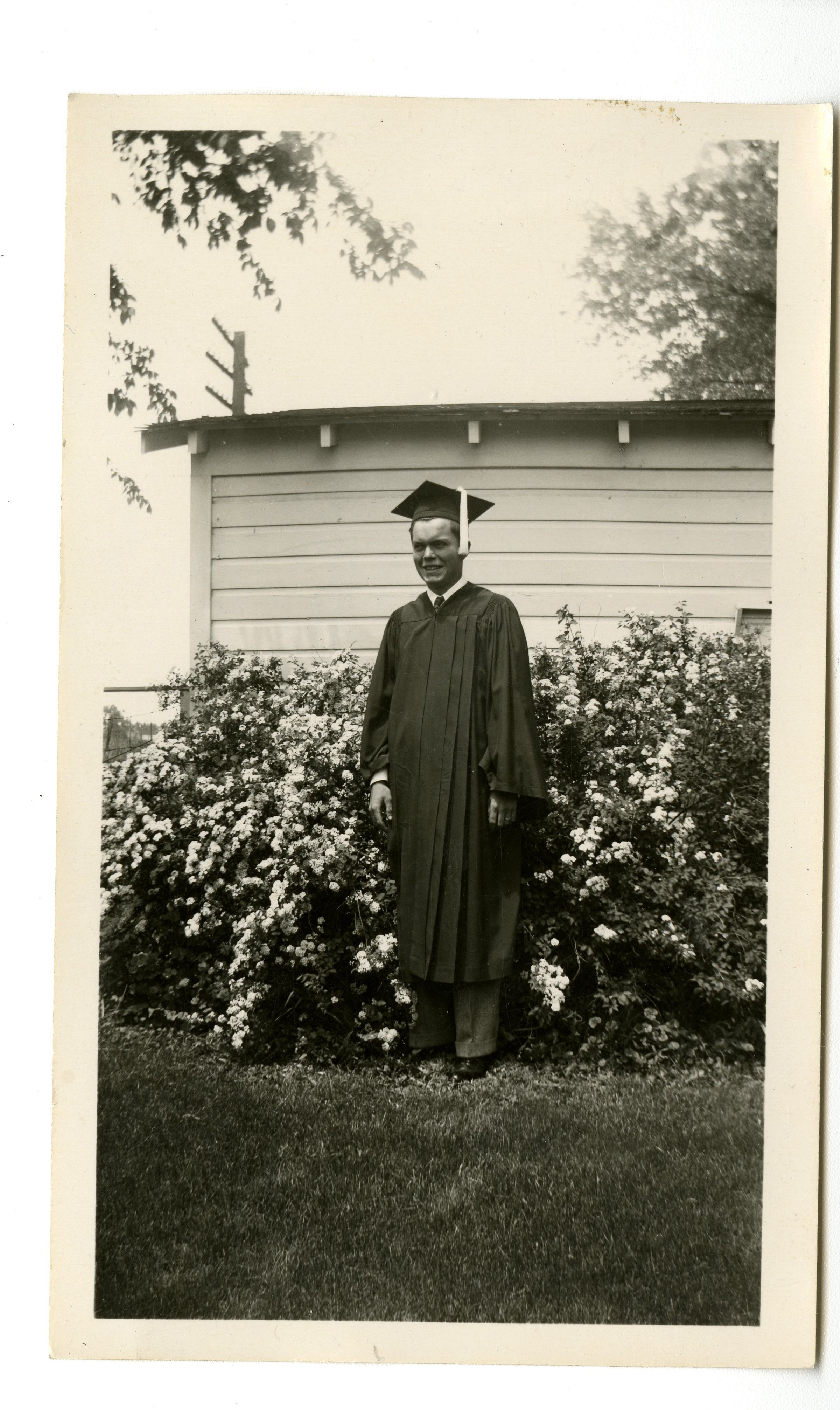 Photograph of Harry Crawford. Taken in 1947. Event was graduation. Possibly located at the Crawford Farm.