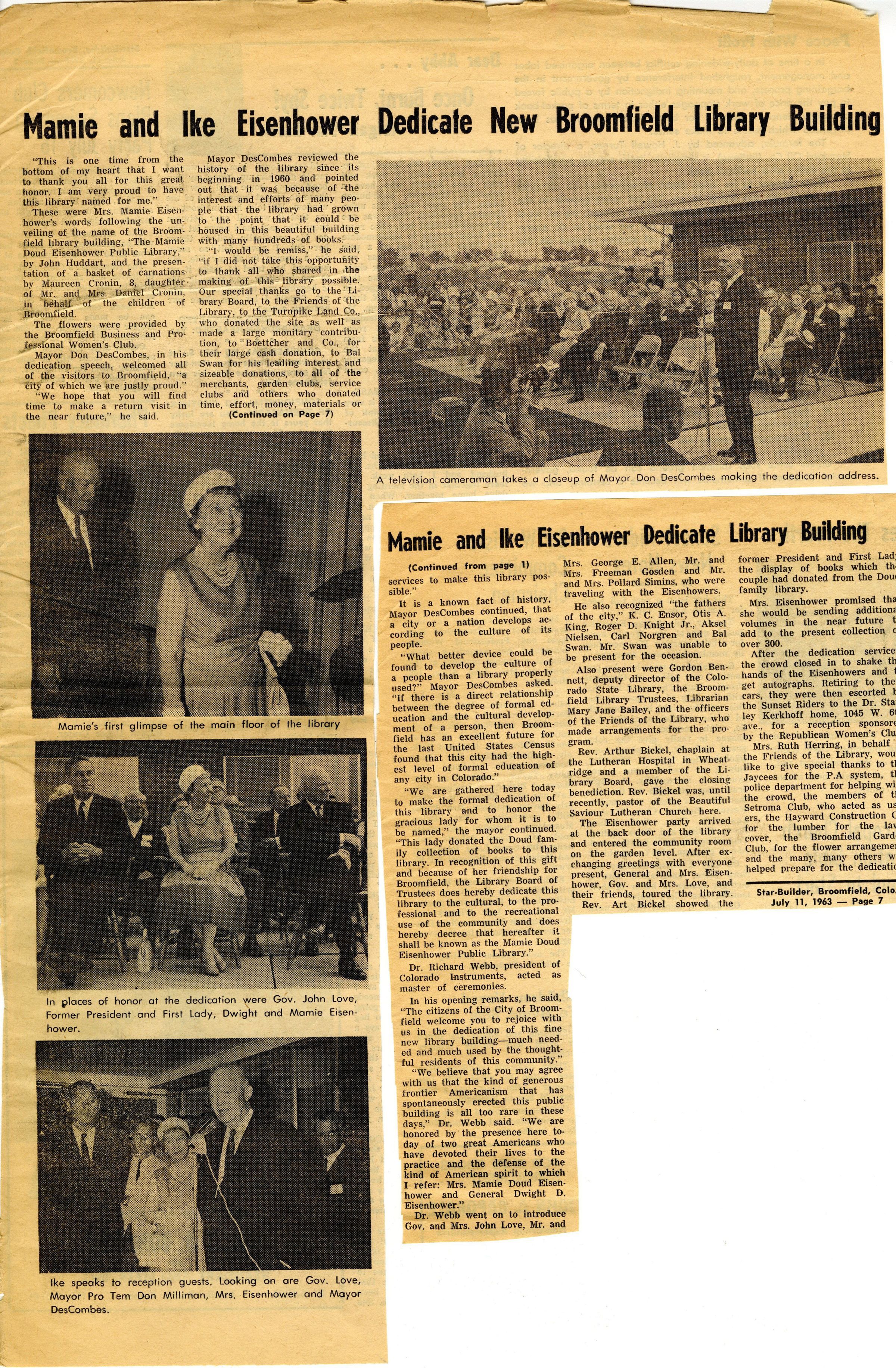 Mamie and Ike Eisenhower Dedicate New Broomfield Library BuildingEntry/Object ID
