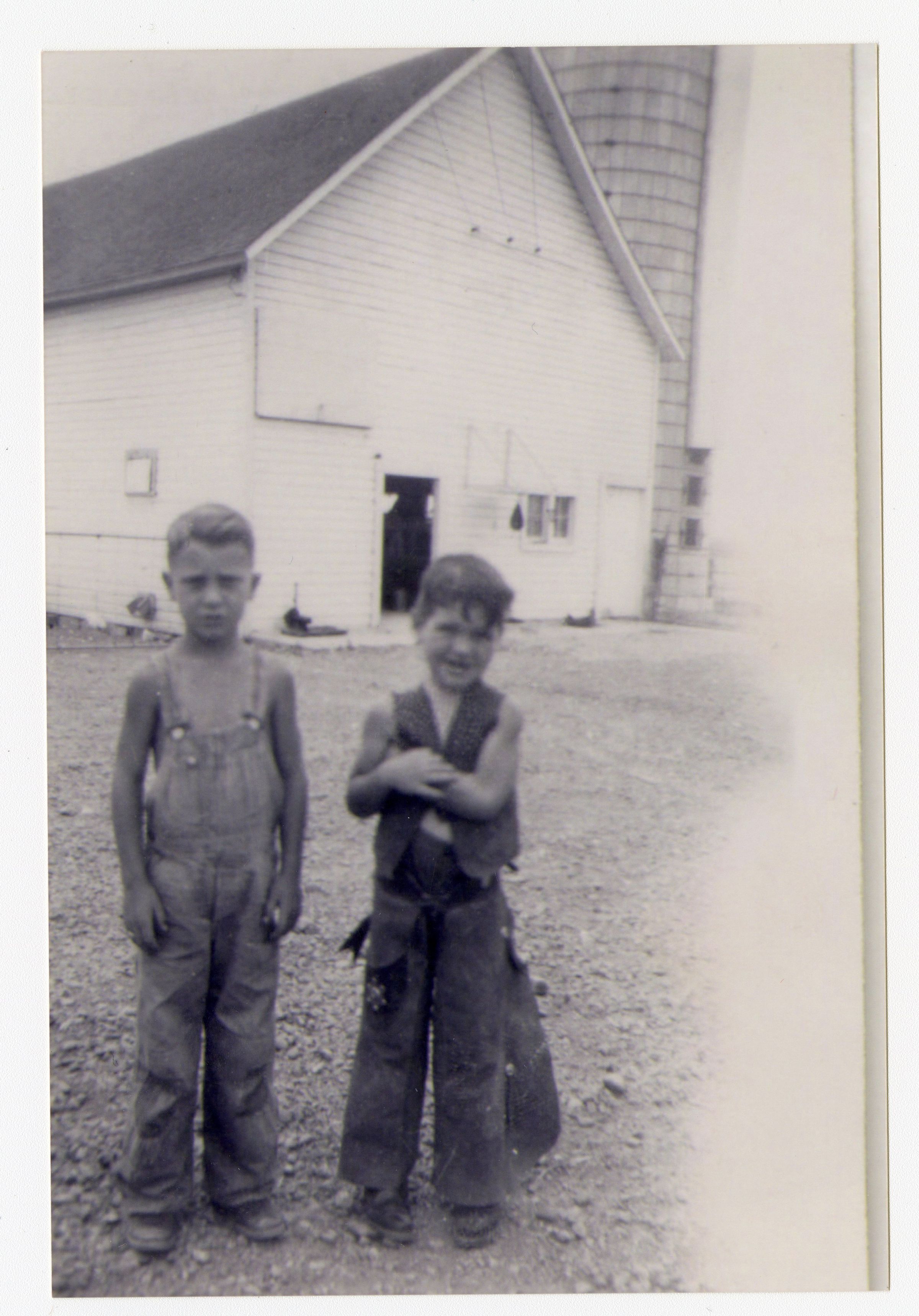 Black and white photograph of Gib and Dale Brunner. Probably located at the "Old Wadsworth Farmhouse"