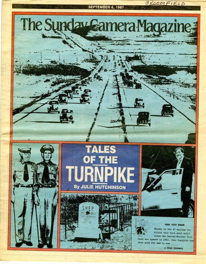 The newspaper is the Sunday Camera Magazine. It contains several articles about the Boulder Turnpike history.