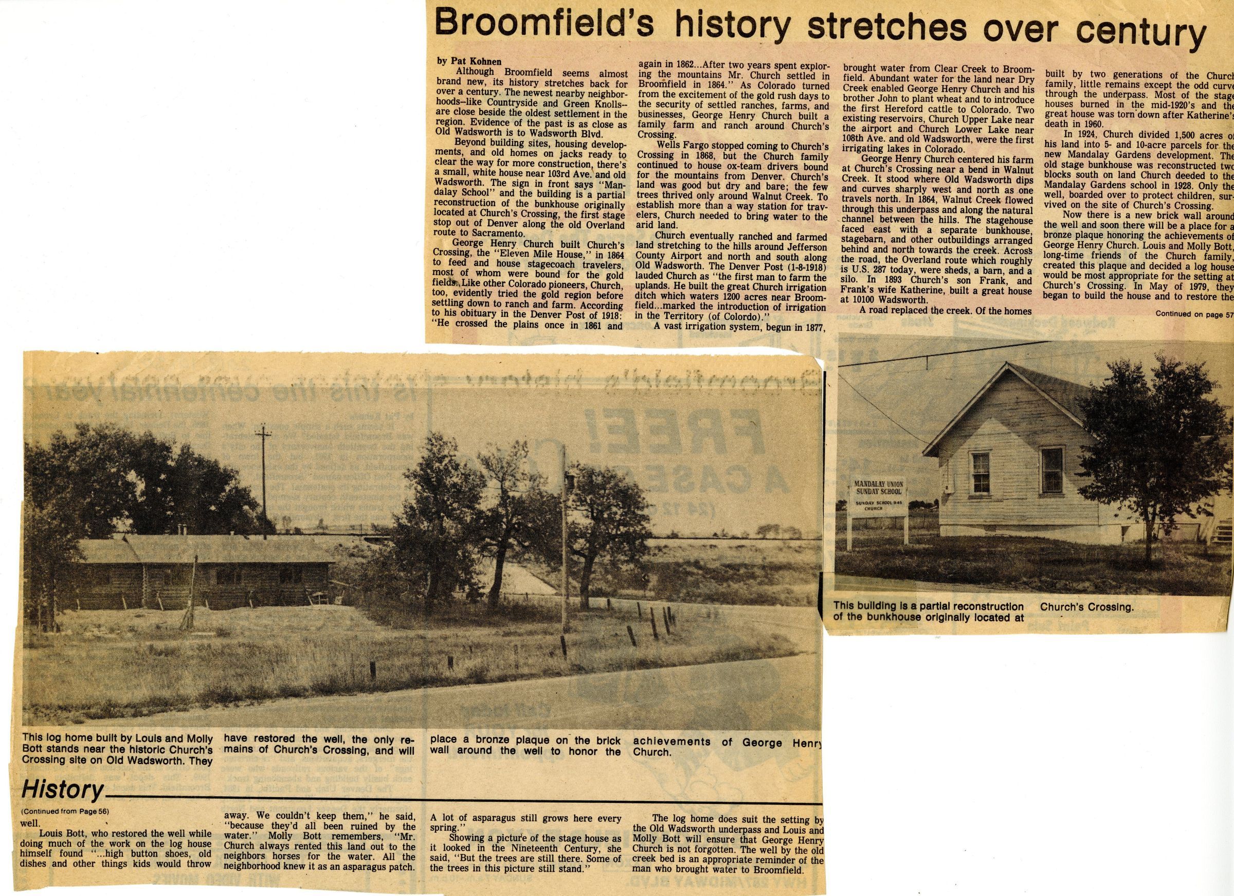Article is about the history of Broomfield and the George Henry Church family.