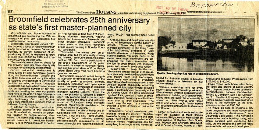 Broomfield celebrates 25th anniversary as state's first master-planned cityEntry/Object ID