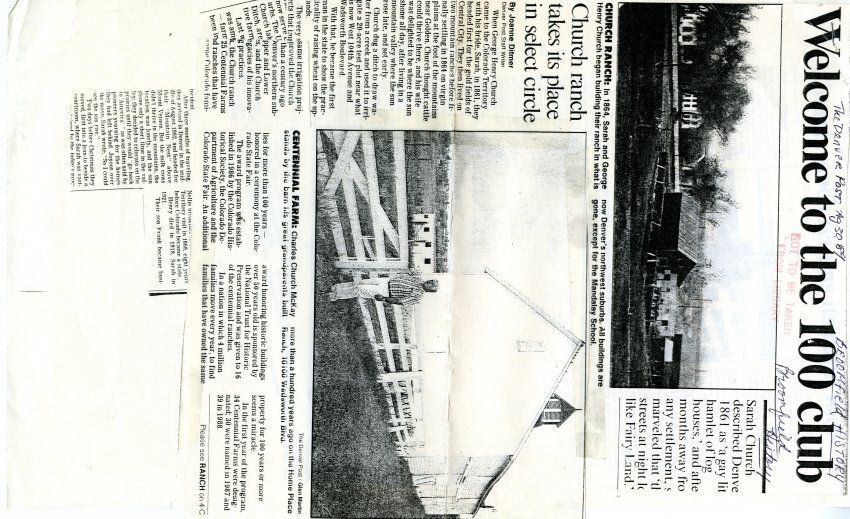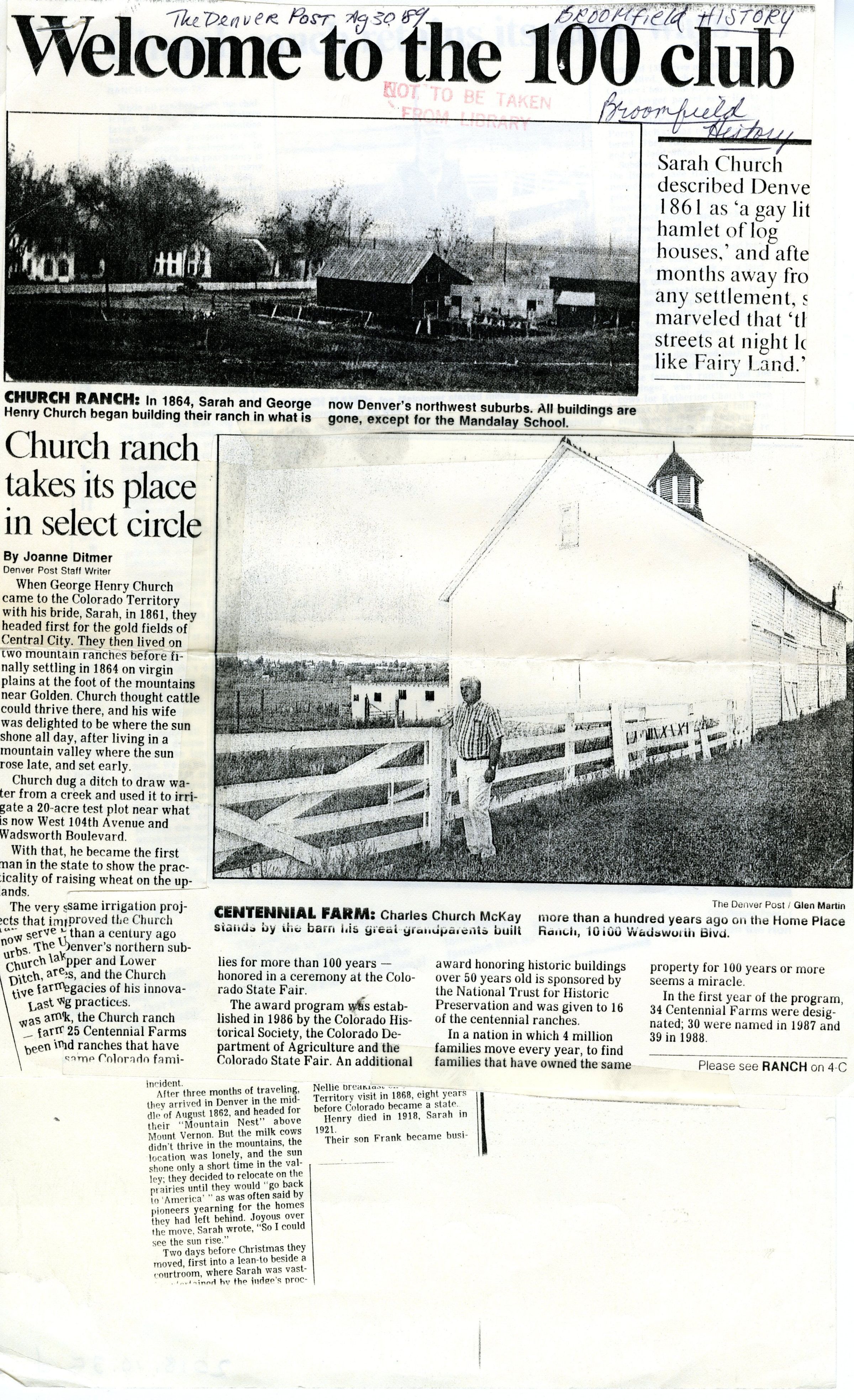 Photocopy of a newspaper article about Broomfield history and the George Henry Church Ranch