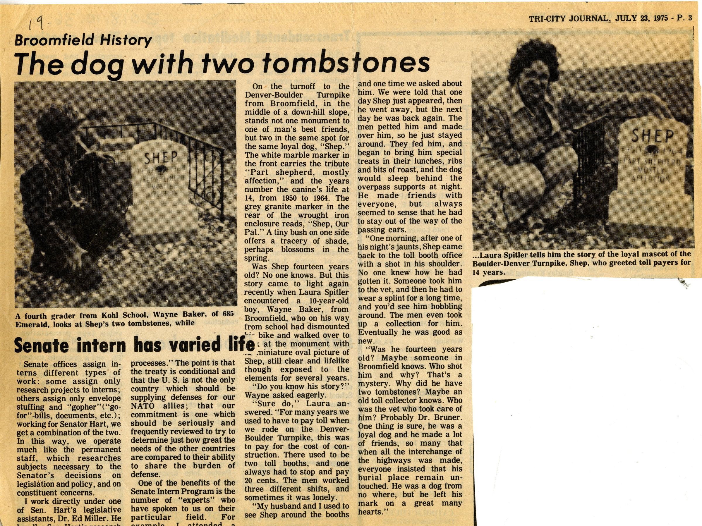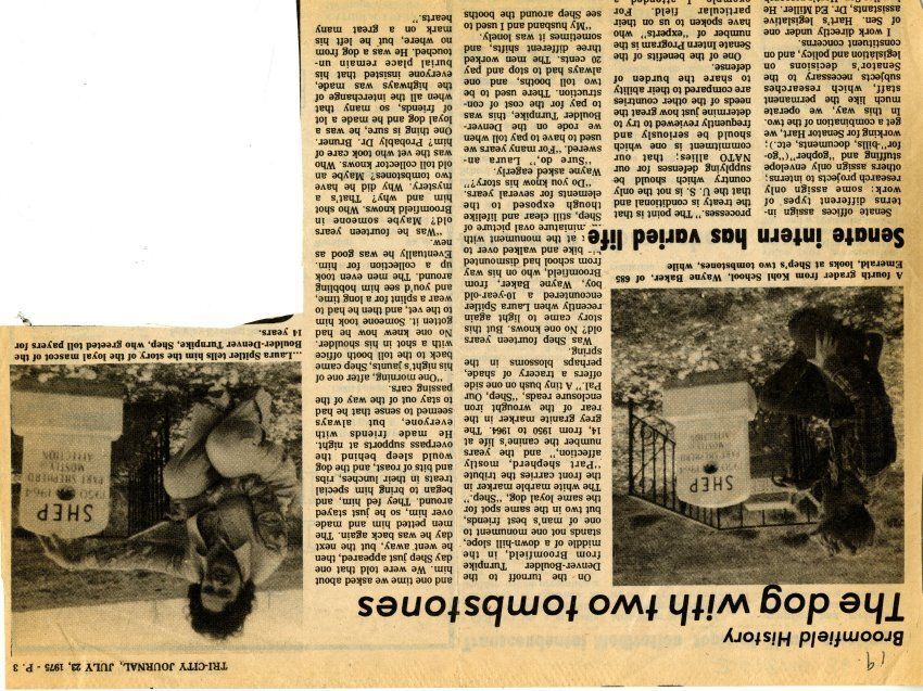 Article is cut out of the Tri-City Journal. Article is about the history of Broomfield and Shep.Lexicon