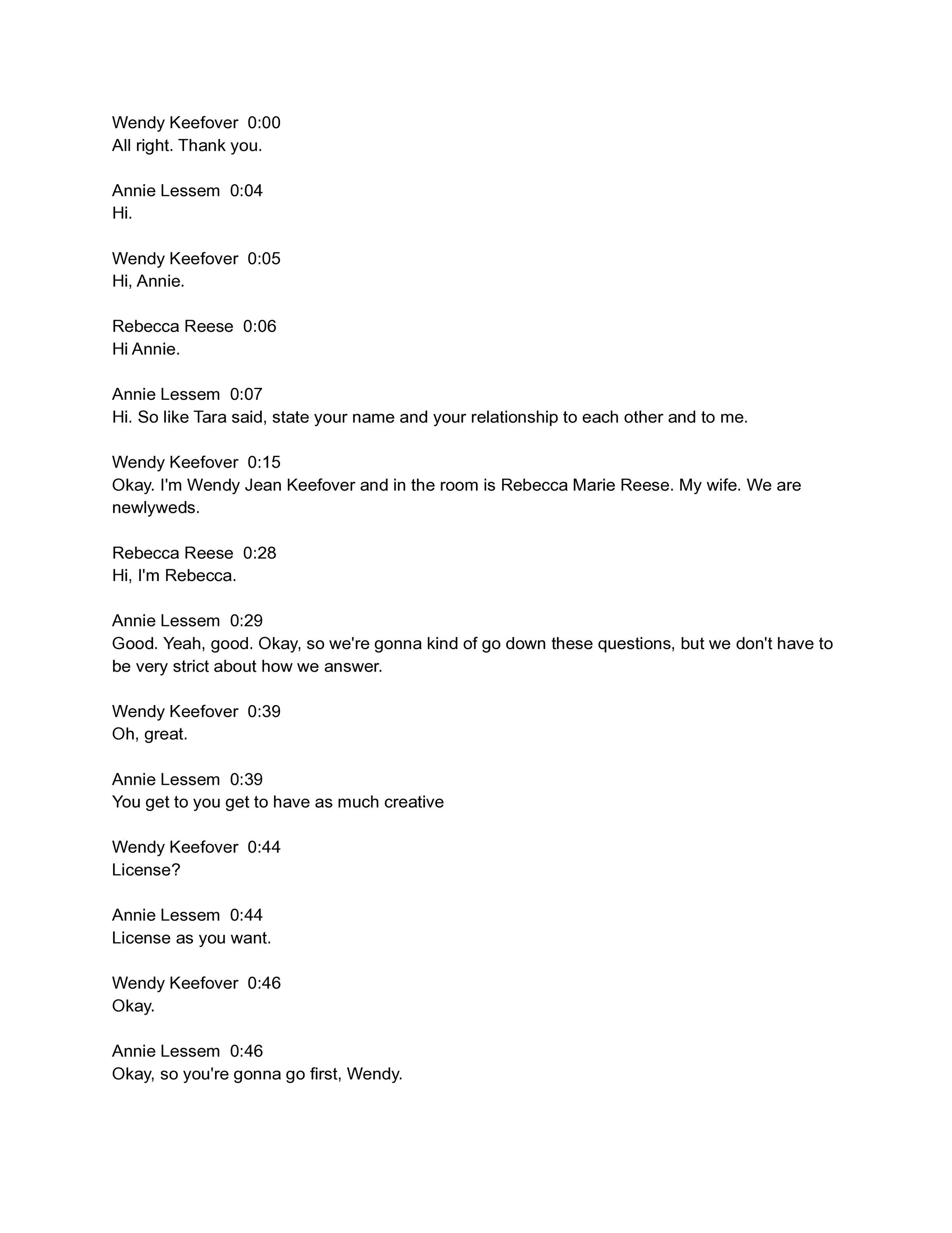 Digital recording of You Are Broomfield series, interviewing Wendy Keefover and Rebecca Reese, wife. Interviewed by Annie Lessem