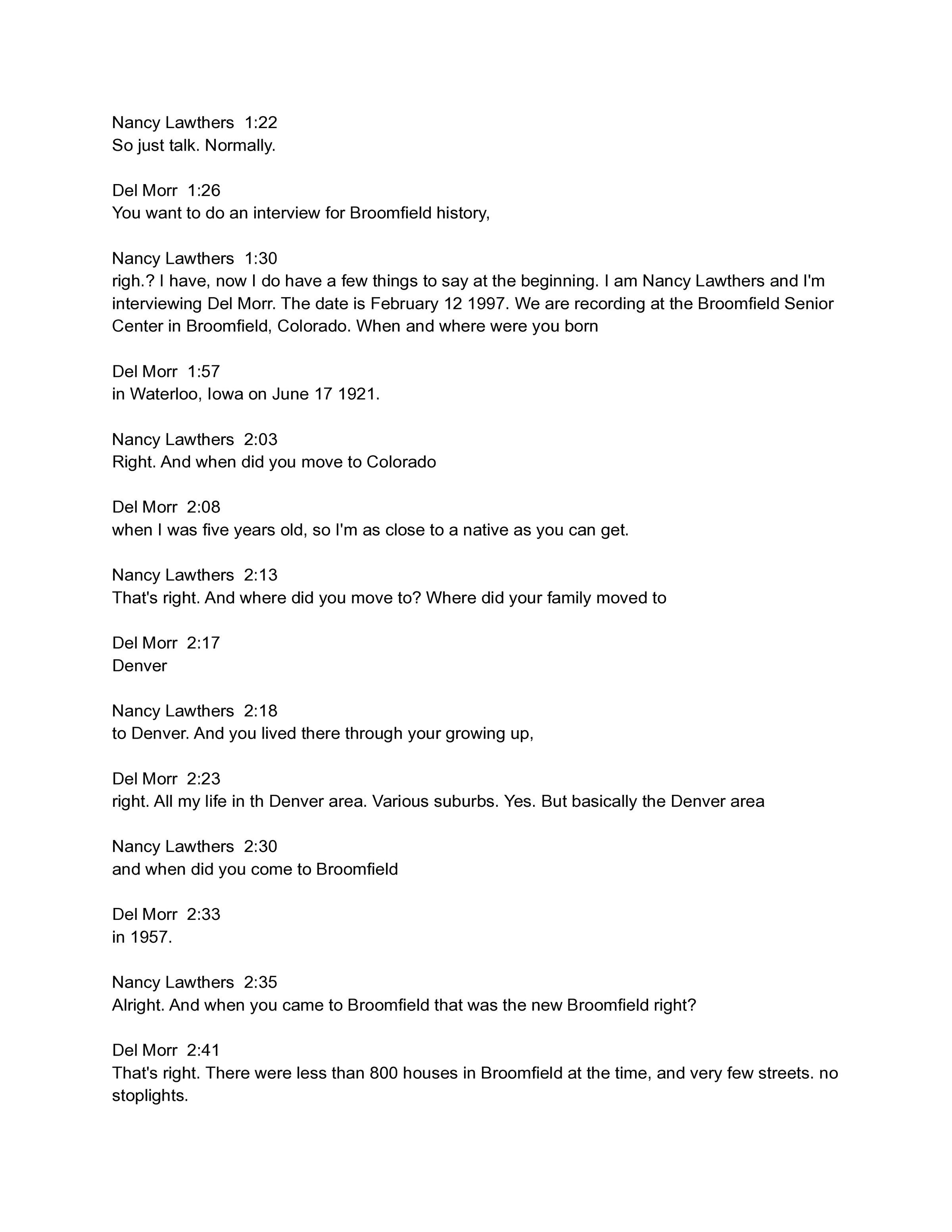 Oral History interview of Del Morr, by Nancy Lawthers, on February 12th, 1997.