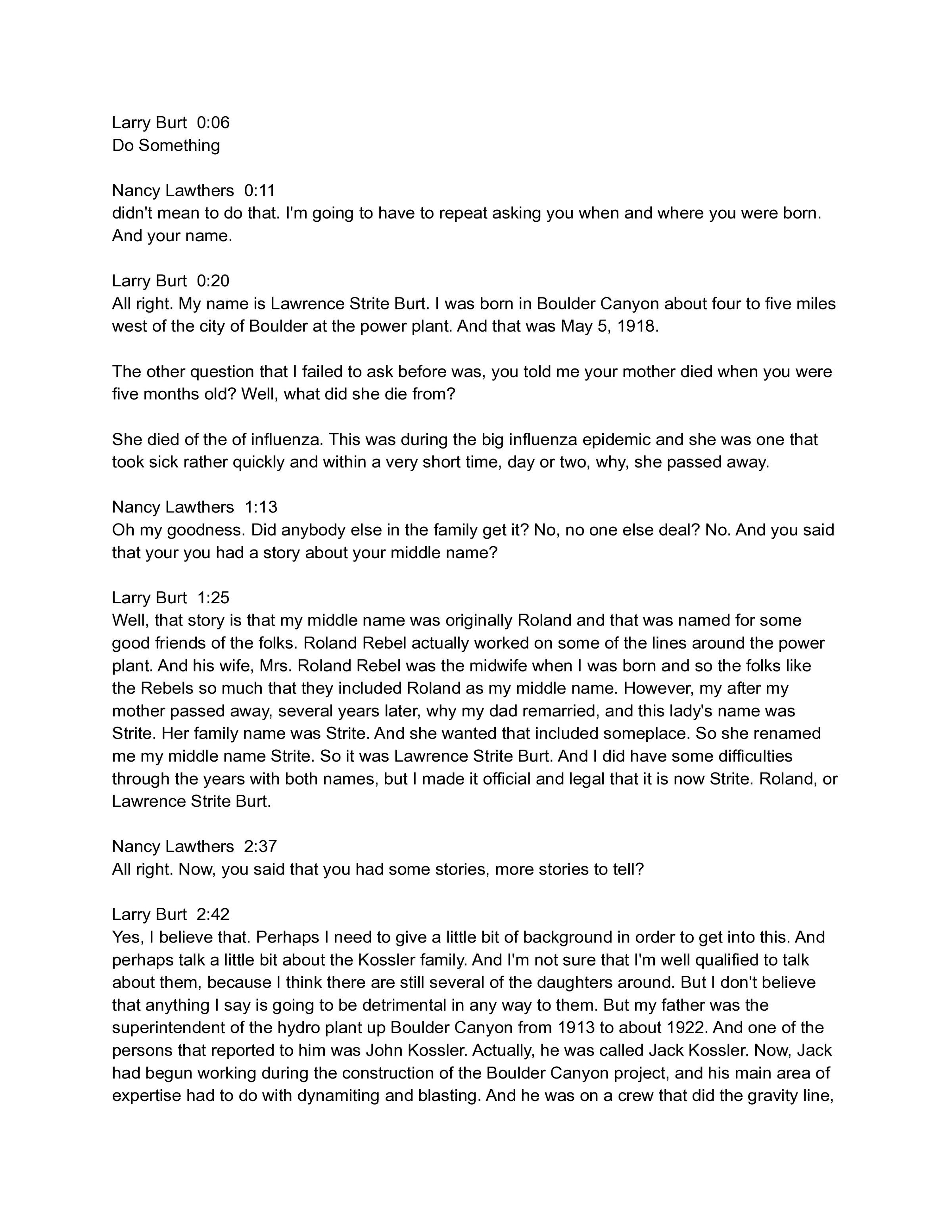Oral history interview of Larry Burt, interviewed in May, 1997.