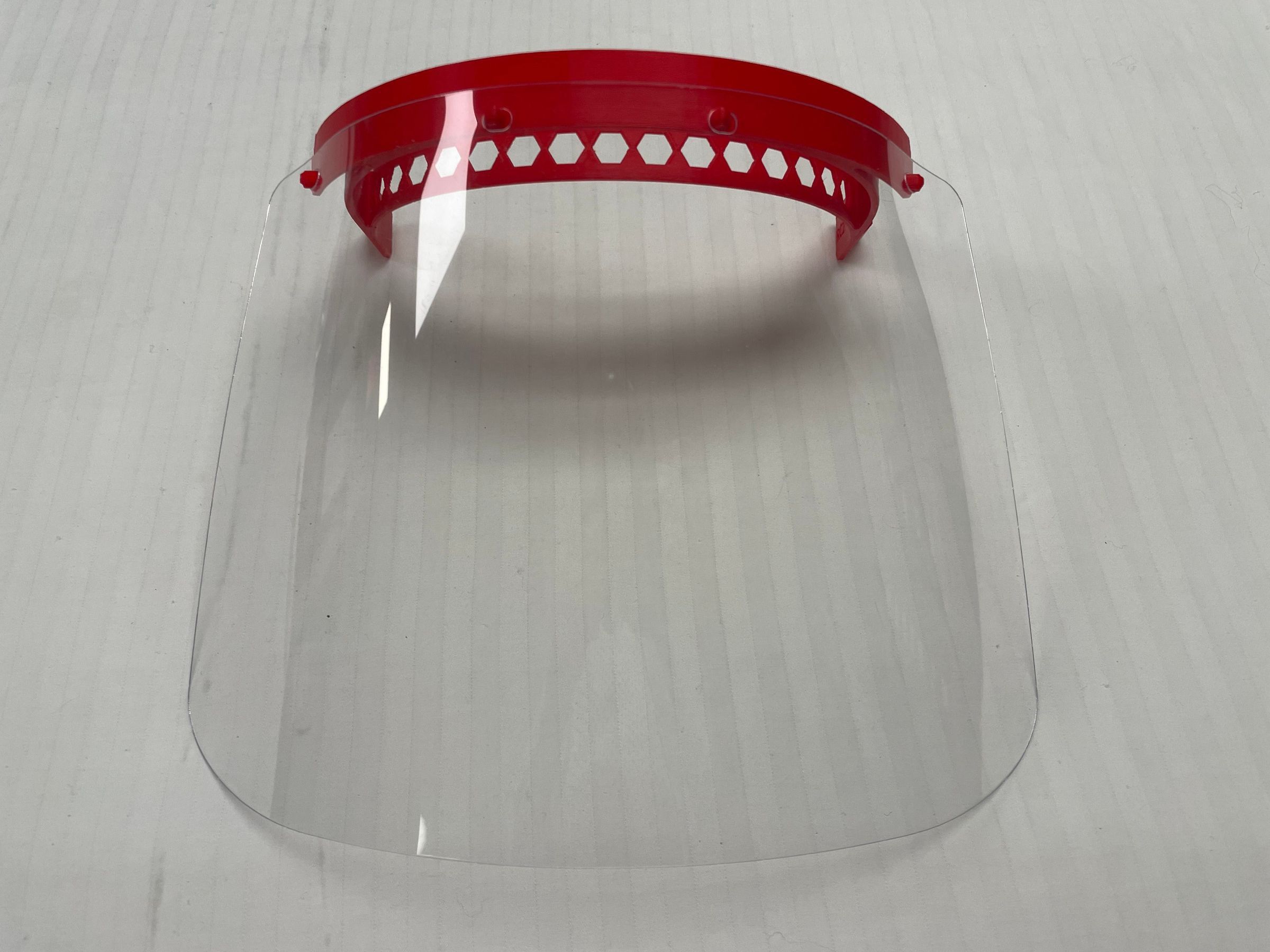 A. Face Shield - 11 inches by 7 inches face sheild with a red headband. Face sheild is another way to cover your mouth and nose. It is either used by itself or over a surgical mask for extra protection. Used in Covid 19 pandemic or hospital.