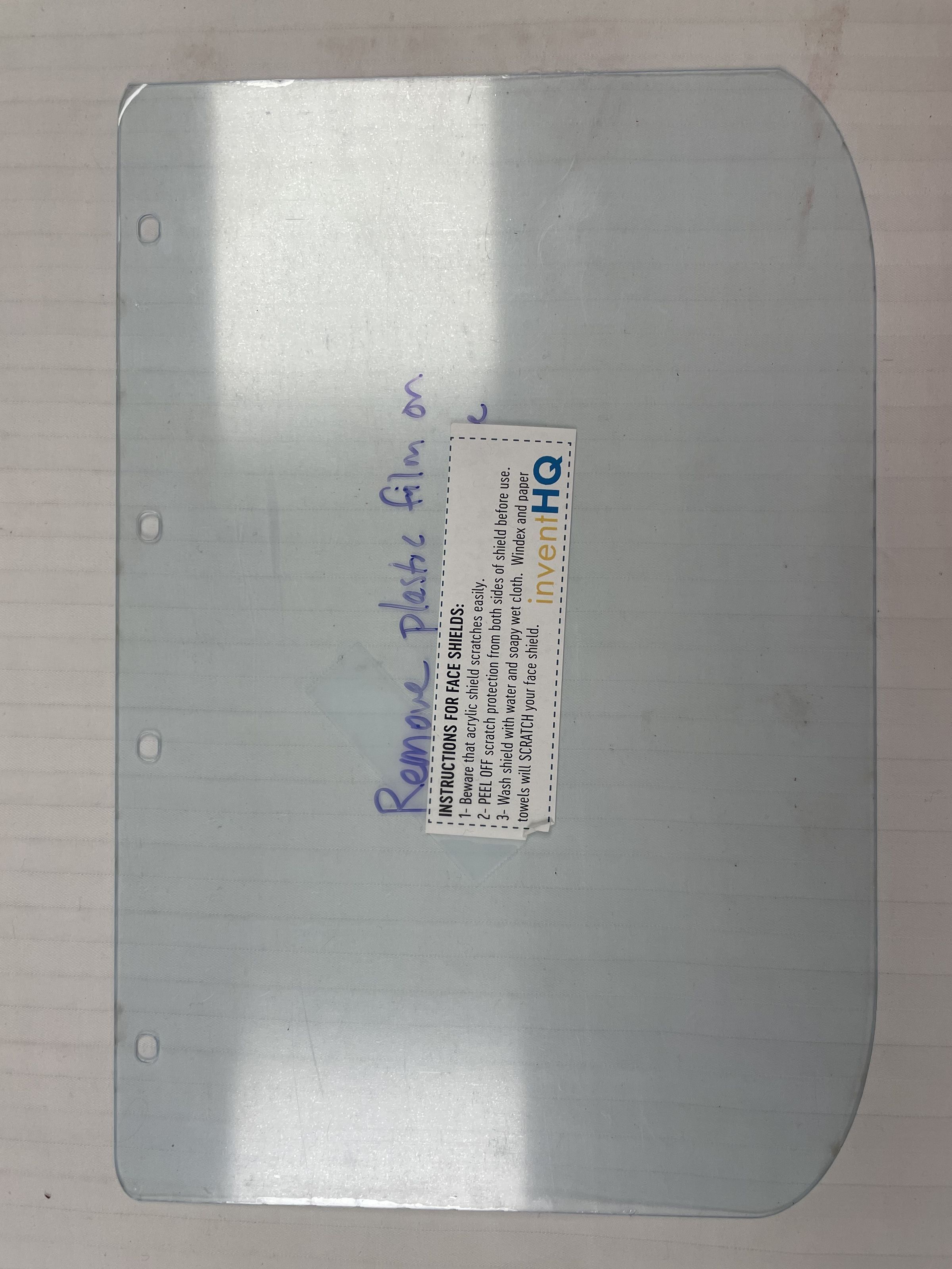 B. Extra Shield for 2021.6a 12 inches by 7 inches extra film to attach on top of face sheild. Has four holes on top to atttach to face sheild. Has a note on removing plastic film berfore use. Also has instruction on how to use and care for face sheild.